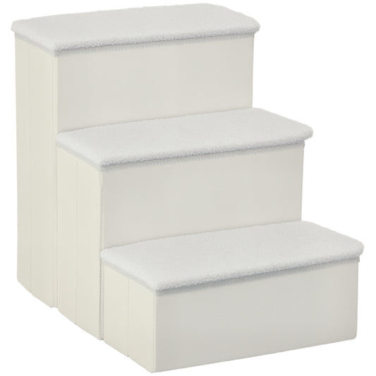 PawHut Hundetreppe 3 Stufen 48 cm Hoch Haustiertreppe für kleine und alte Tiere klappbar Katzentreppe Hunderampe Einstiegshilfe für Bett, Sofa, Couch und Auto Weiß