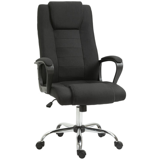 Vinsetto Bürostuhl Computerstuhl mit Wippenfunktion Kopfstütze ergonomischer Schreibtischstuhl drehbar höhenverstellbar Leinen-Touch Schwarz 62 x 76 x 110-119 cm