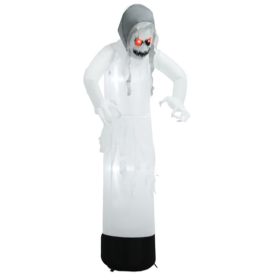 Outsunny Halloweendeko, Geisterhexe mit roten Augen, aufblasbar, LEDs, Outdoor-tauglich, 180 cm, Weiß