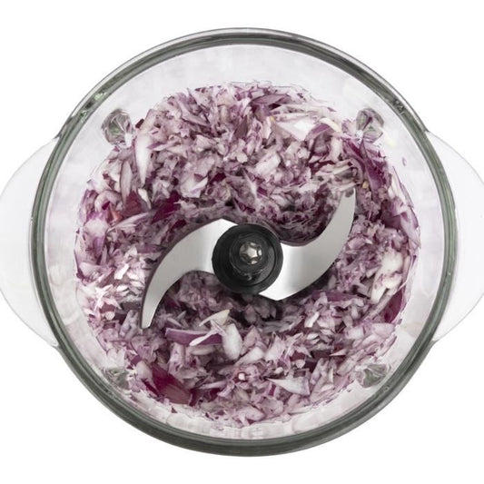 Mini electric chopper - H.Koenig - LEO8 - 320 W - 1 L glass bowl - Stainless steel blades - Matt black and chrome
