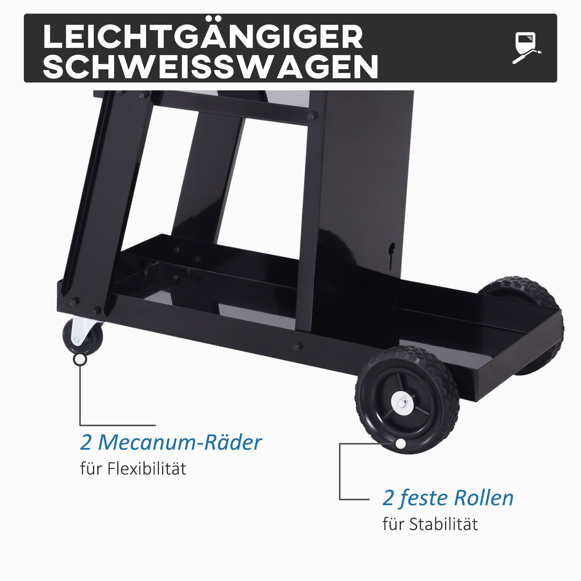DURHAND Schweißwagen, 3 Ablagen, Sicherheitskette, 4 Räder, Stahl, 71 x 39 x 70cm, Schwarz