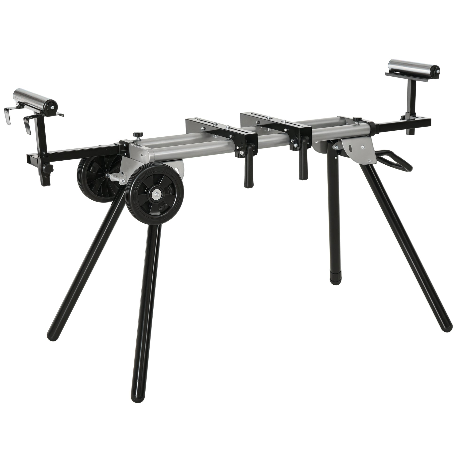 DURHAND Untergestell für Kappsägen Arbeitstisch für Kapp- und Gehrungssägen Sägengestell Kappsäge Stahl Schwarz+Silber Seitenverlängerung 123,5-245 cm