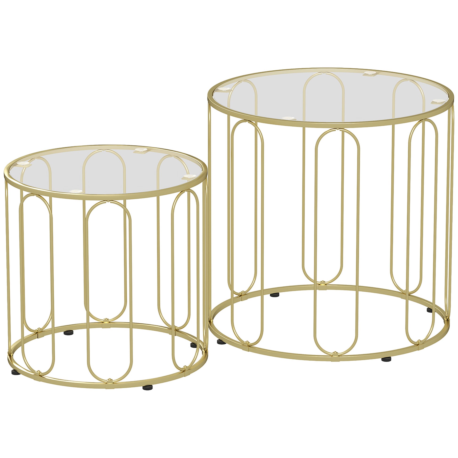 HOMCOM 2er-Set Glastische, ineinander verschiebbar, Glasplatten, Metallgestell, Goldfarben