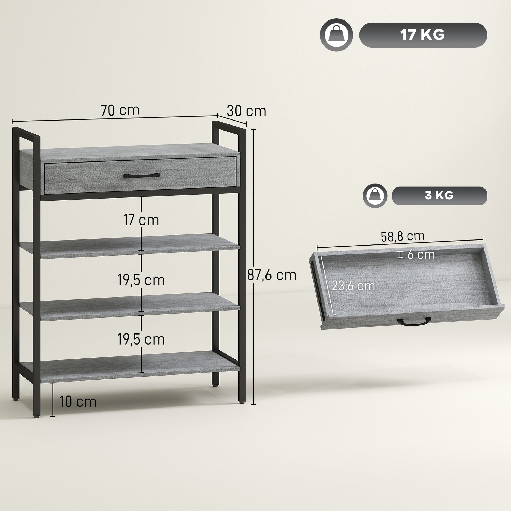 HOMCOM 4-stufiges Schuhregal, Flurregal für bis zu 9 Paar Schuhe, Spanplatte, Metall, Grau