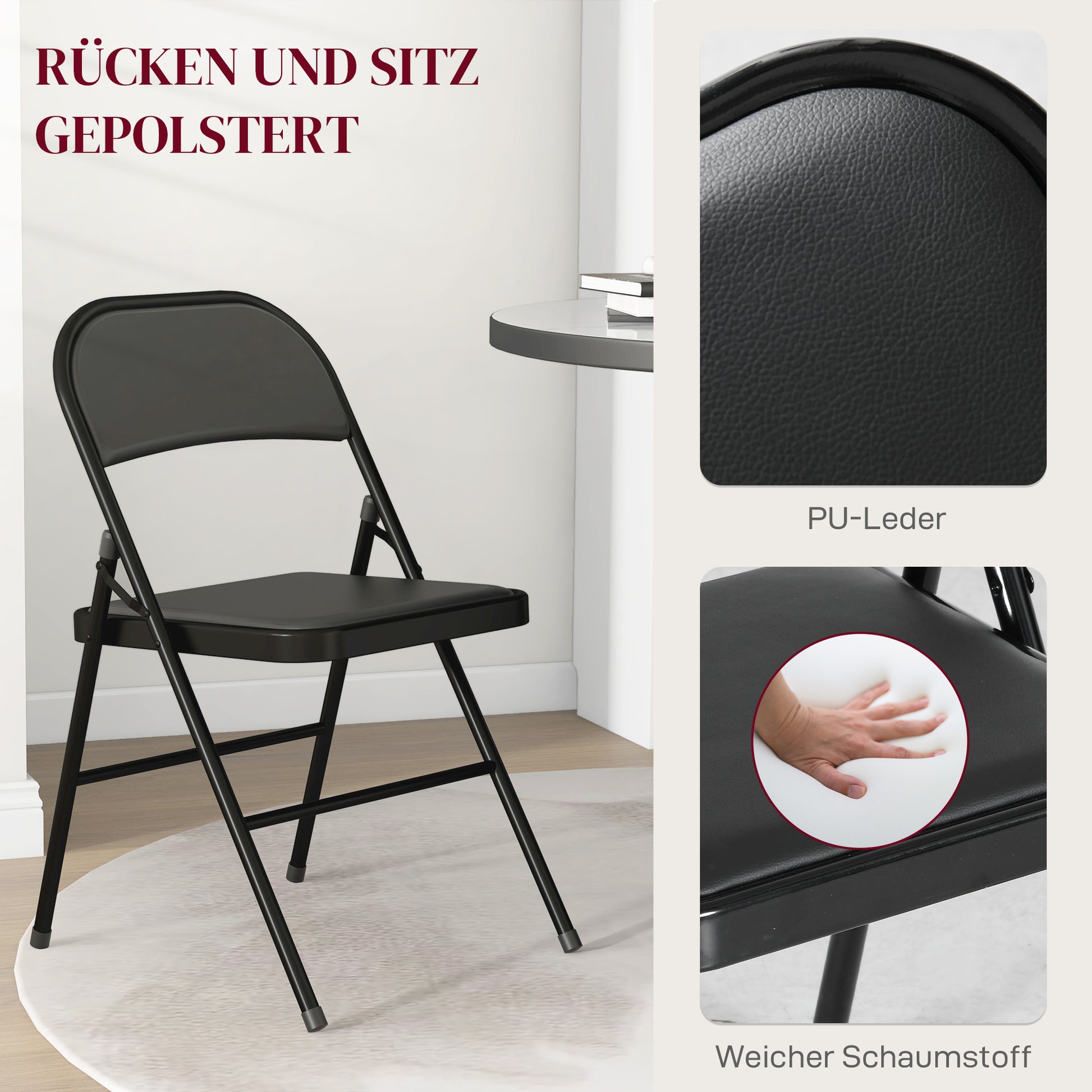 HOMCOM 4er-Set Klappstühle, Tragbare Bürostühle, Metallbeine, Faltstuhl für Büro, Empfang, Wartezimmer, Kunstleder, Schwarz