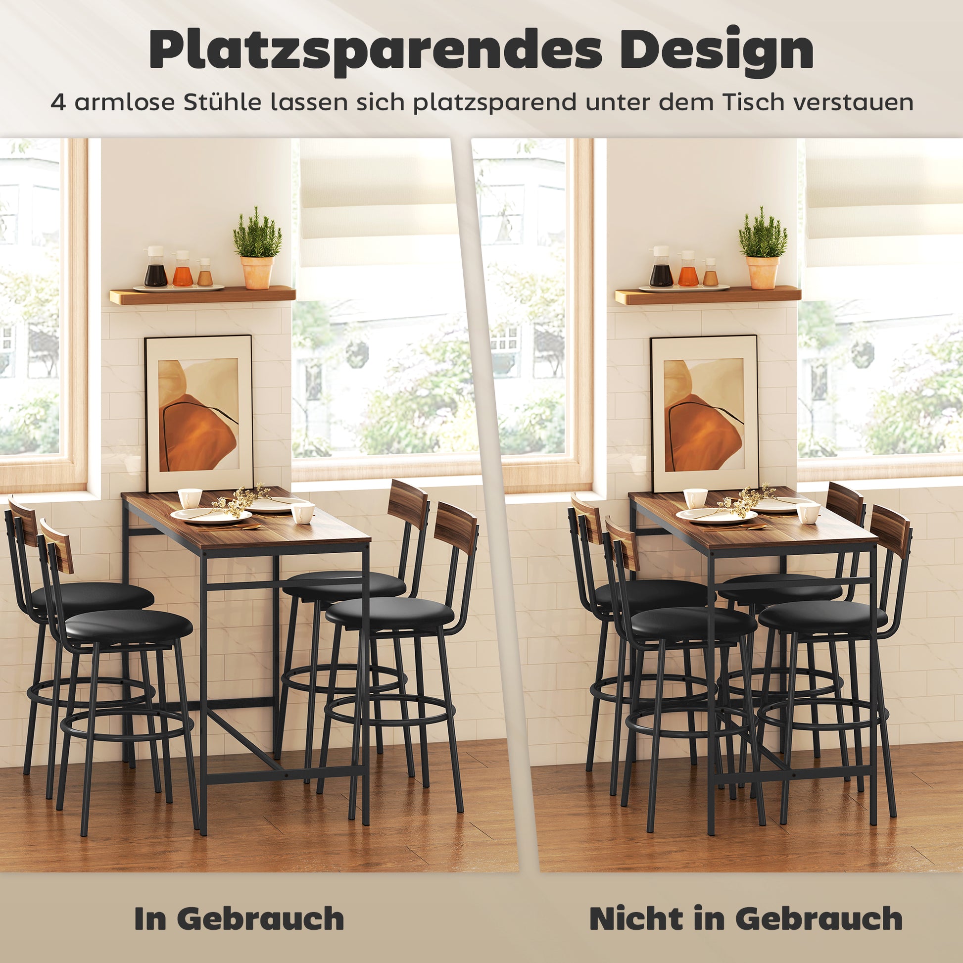 HOMCOM 5-teiliges Bartisch-Set mit 4 Stühlen, Industrielles Design, für Küche, Esszimmer, Holz, Stahl, Braun