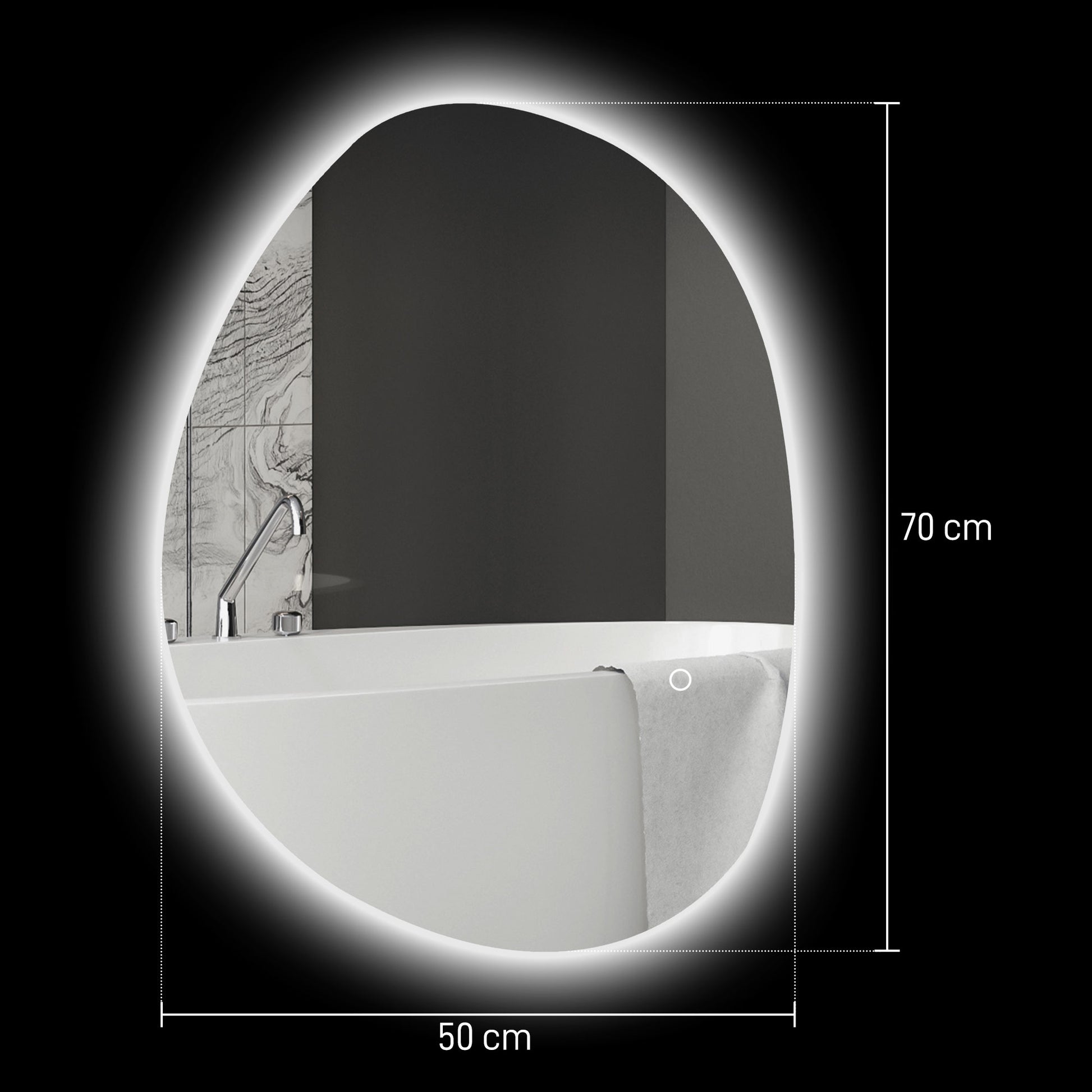 HOMCOM 70 x 50 cm Asymmetrischer Badspiegel mit LED-Licht, Smart Touch Schalter, Anti-Beschlag-Funktion, Silber