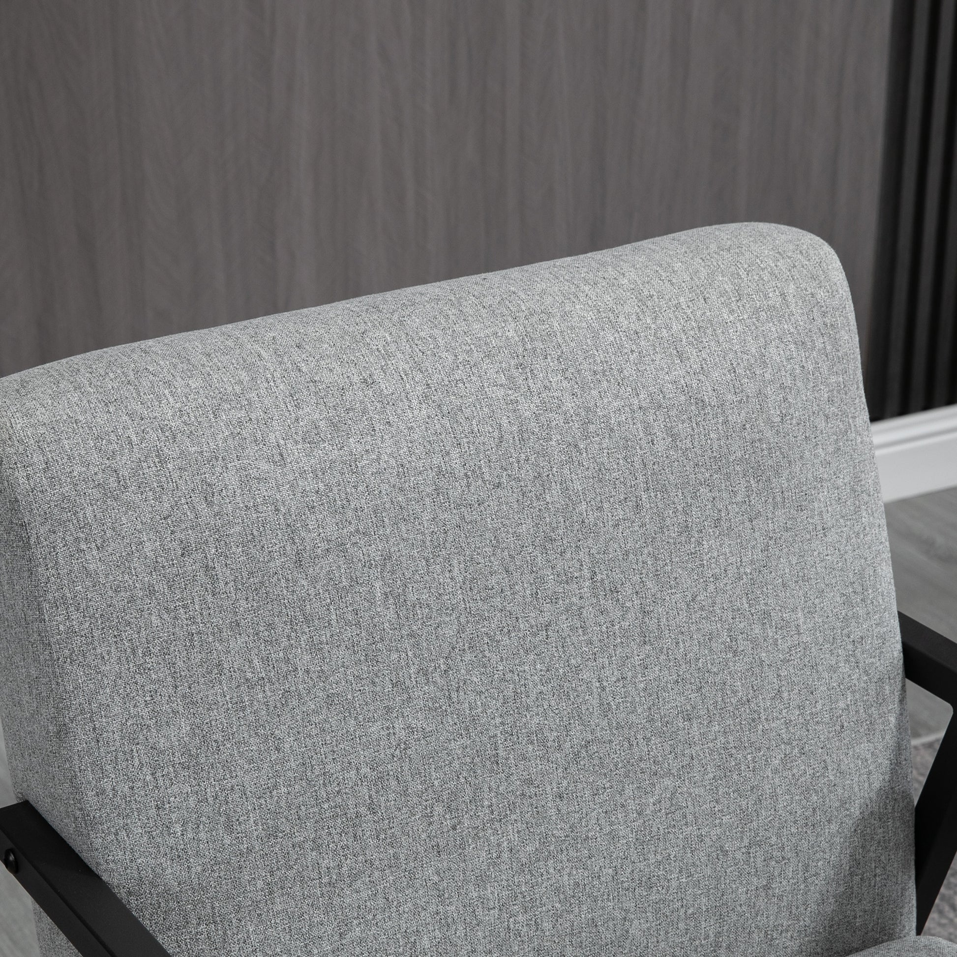 HOMCOM Akzentsessel im Skandidesign, Ruhesessel ,Akzentstuhl, Leinenoptik, Kautschukholz, Grau + Schwarz + Braun