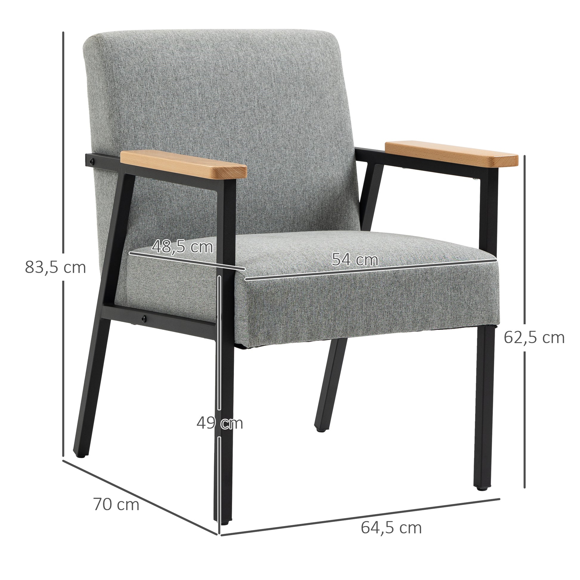 Verwenden Sie diesen komfortablen Akzentstuhl als bequeme Sitzgelegenheit in Ihrer Wohnzimmerecke, im Gästezimmer oder im Arbeitszimmer oder als zusätzlichen Stuhl für Gäste. Die breiten Armlehnen aus Holz und die dick gepolsterte Sitz- und Rückenflächen sorgen für einen optimalen Sitzkomfort. Die Konstruktion besteht aus einem stabilen Metallrahmen. Armlehnen aus Gummiholz sorgen nicht nur für Eleganz, sondern auch für Komfort. Lehnen Sie sich zurück und entspannen Sie sich in diesem Akzentstuhl von HOMCOM.