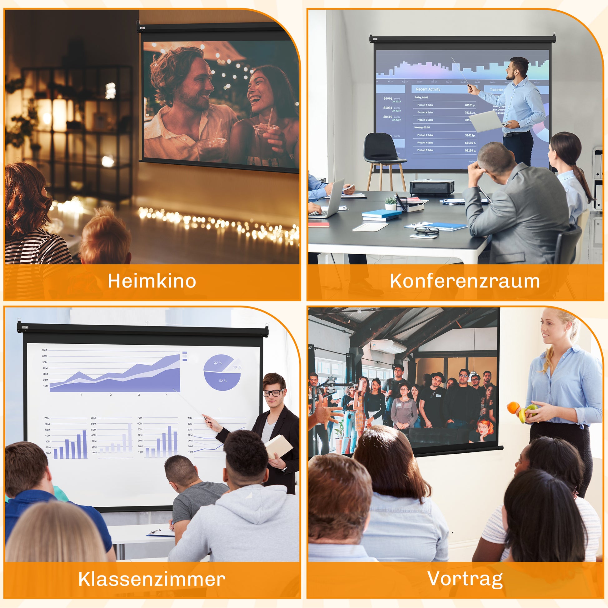 HOMCOM Beamer-Leinwand, Projektionsleinwand, 100 Zoll, 4:3, 203x152 cm, Schwarz