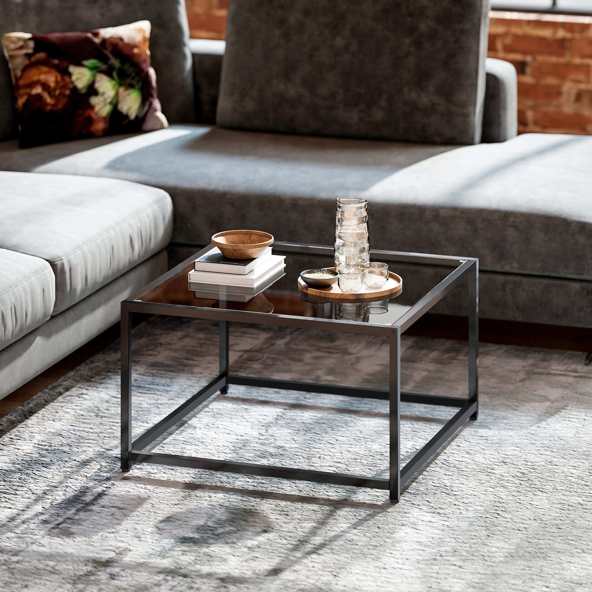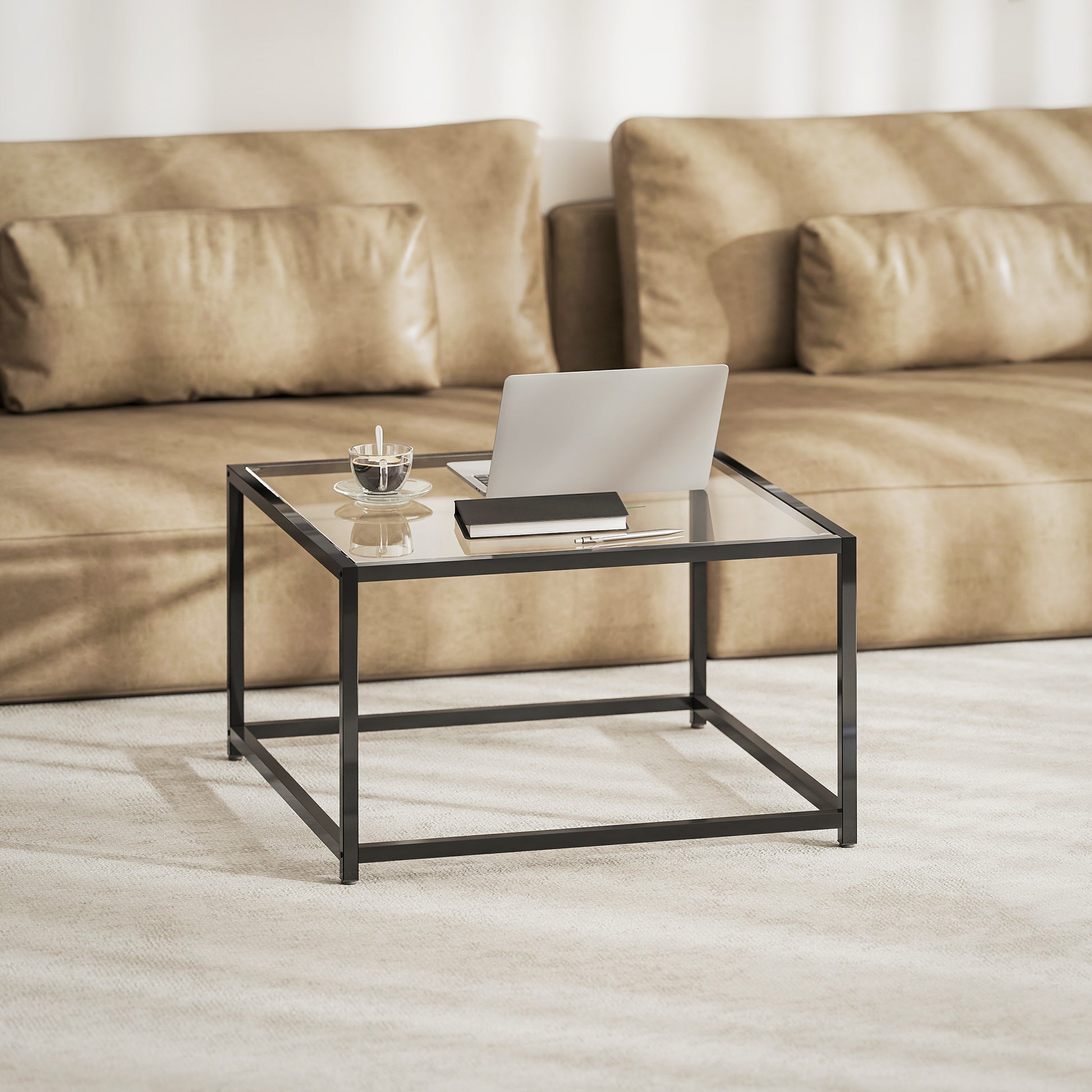 HOMCOM Beistelltisch Quadratisch Nachttisch mit Hartglas-Tischplatte, Couchtisch mit Beinen aus Stahl 68 x 68 x 39 cm Schwarz