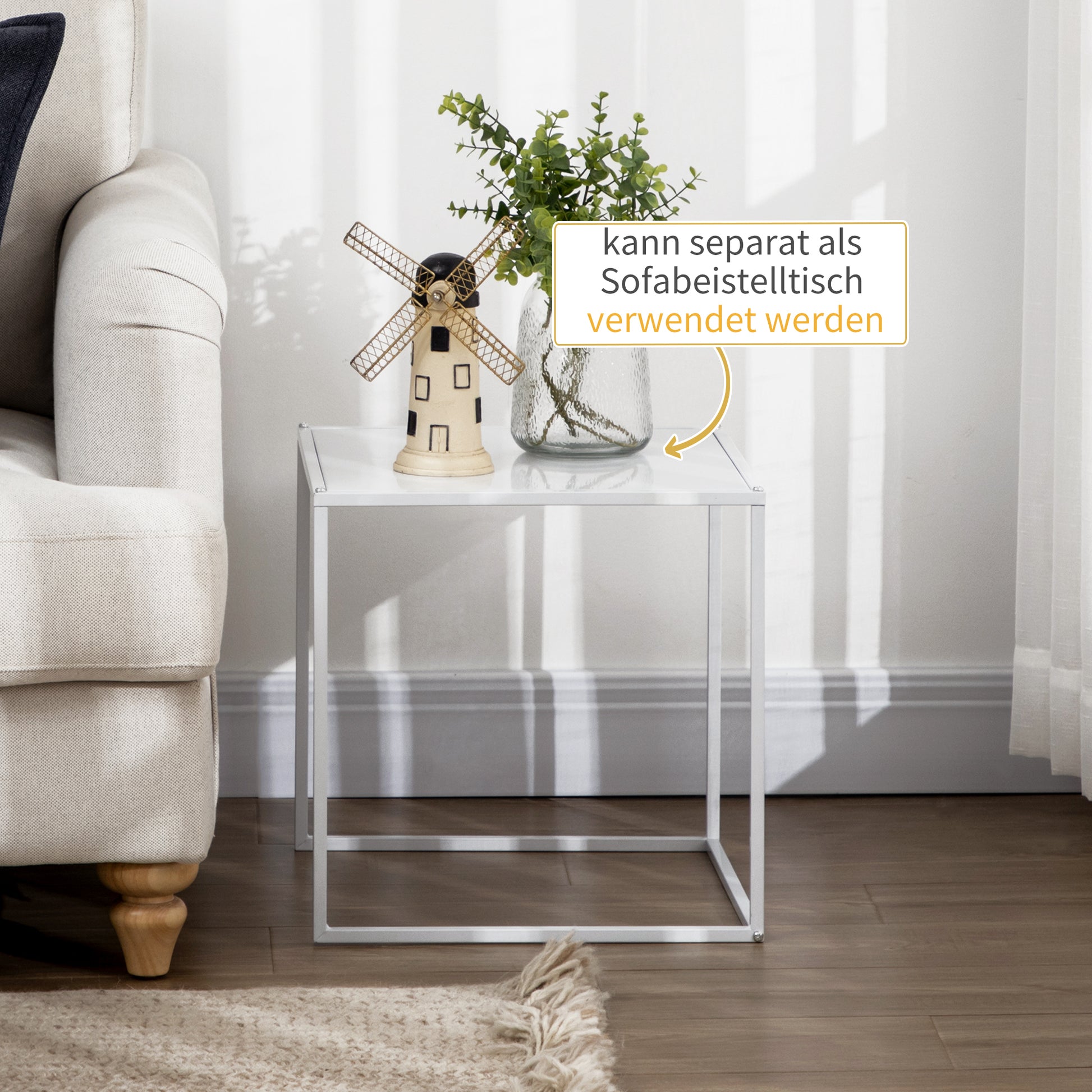 HOMCOM Beistelltisch-Set, moderne Satztische, platzsparend, stabiler Stahlrahmen, Weiß
