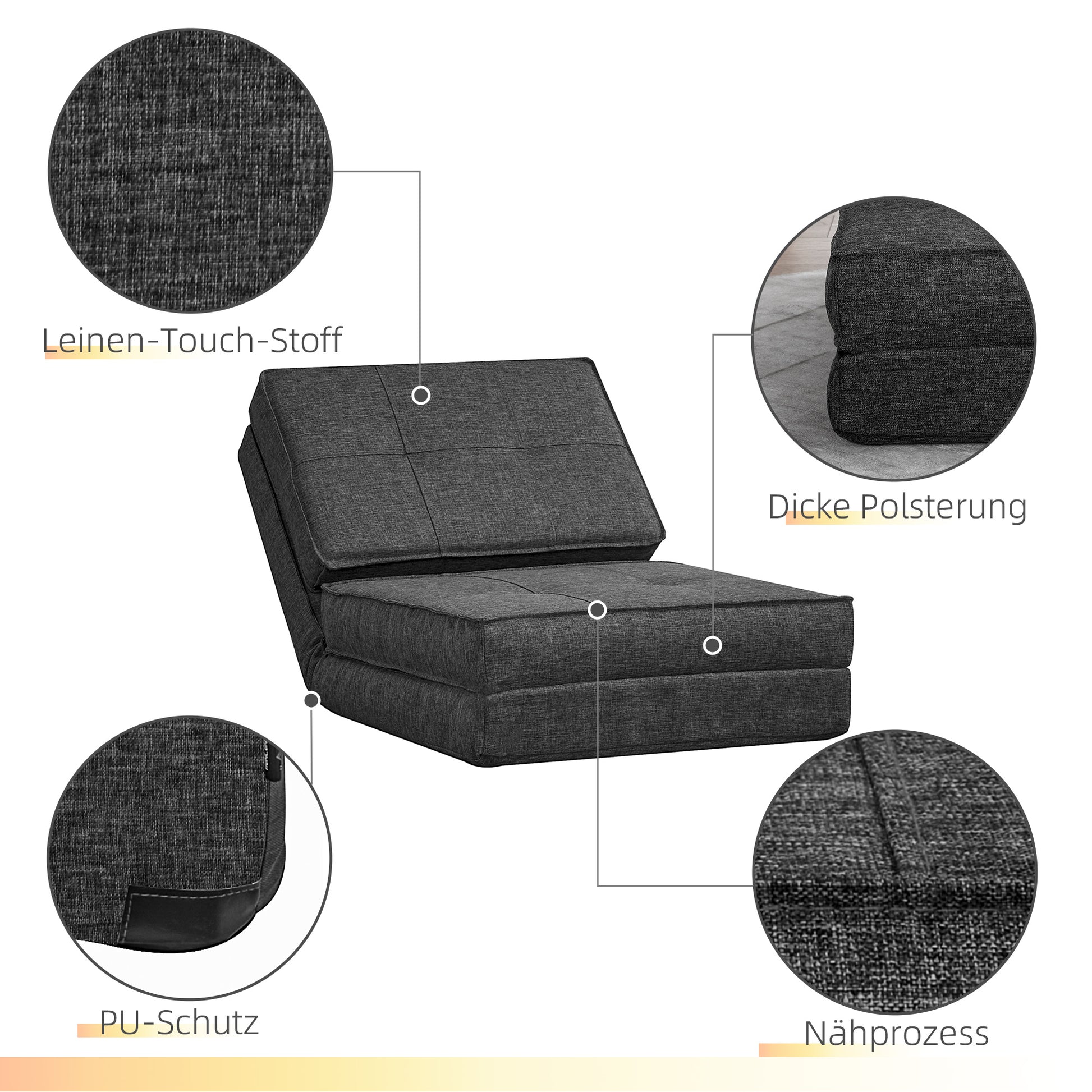 Mit diesem Bodensessel von HOMCOM wird das Sitzen auf dem Boden ausgesprochen bequem und komfortabel! Der Sessel ist mit einem robusten Metallrahmen ausgestattet, der für Stabilität sorgt und der pflegeleichte, hautfreundliche Leinenbezug mit großzügiger Polsterung sorgen für einen herausragenden Sitz- und Liegekomfort. Die Rückenlehne ist in 5 verschiedene Positionen verstellbar und lässt sich um bis zu 180 Grad neigen, sodass Sie den Sessel schnell in eine bequeme Liege verwandeln können.