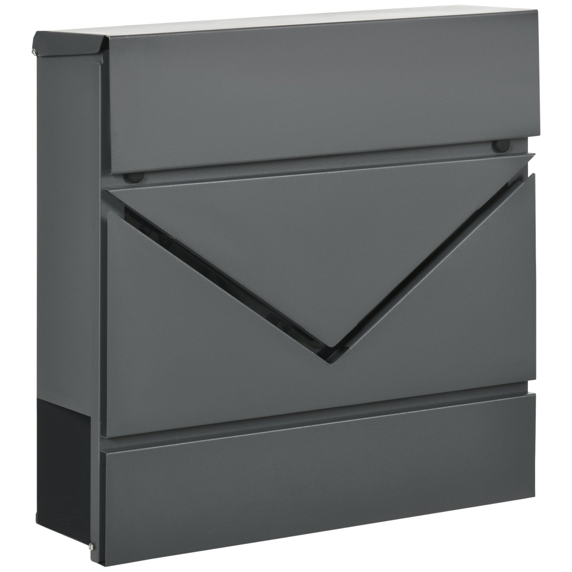HOMCOM Briefkasten mit Deckel, 2 untere Abflusslöcher, Stahl, mit Schloss, Grau