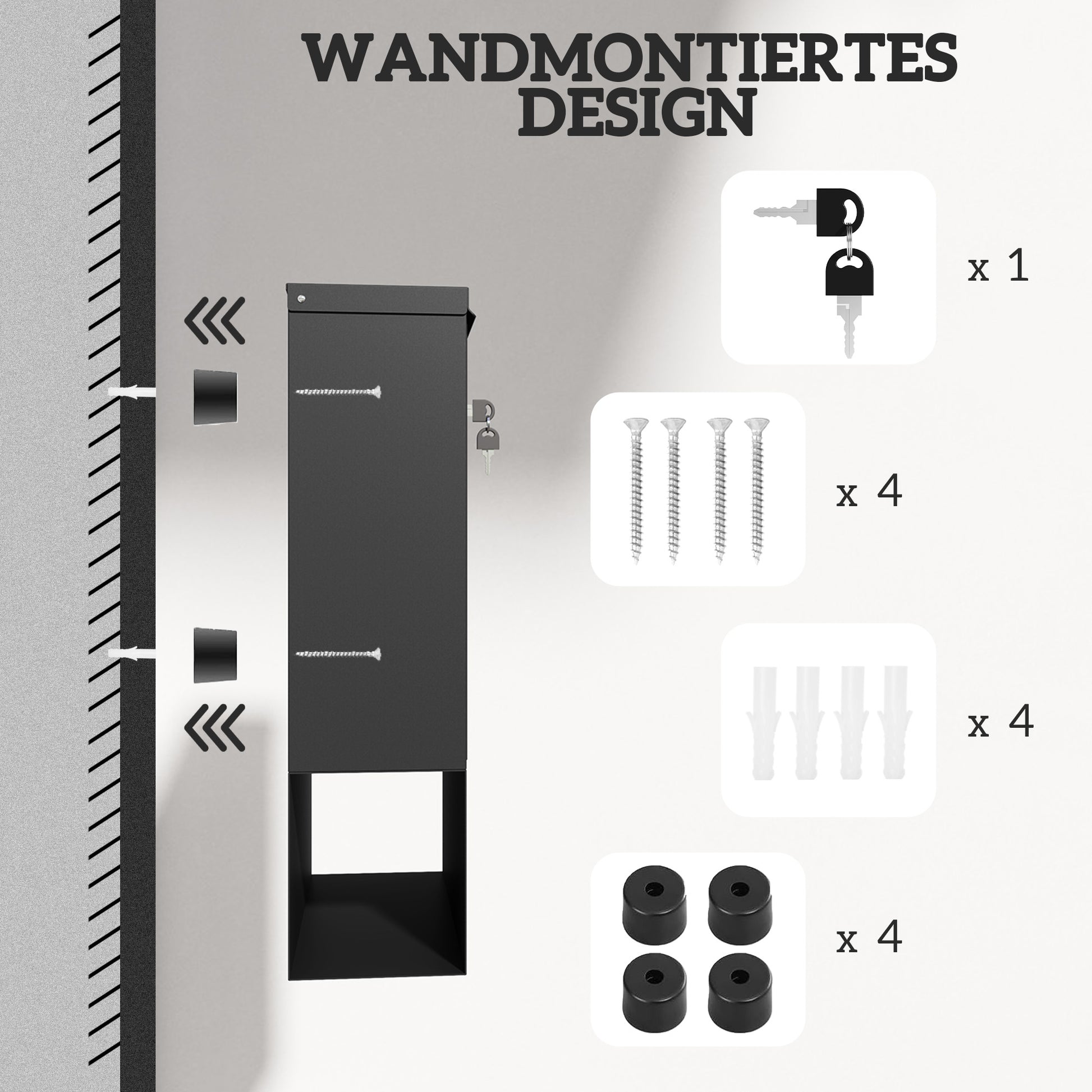 Entdecken Sie die HOMCOM Post Box – Ihre Lösung für sichere Außenposten. Diese aus stabilem Metall gefertigte, moderne Mailbox schützt effektiv vor Rost und Witterung. Dank des abschließbaren Designs ist Ihre A4-Post sicher verwahrt. Ein praktisches Sichtfenster erlaubt schnelle Einblicke in Ihre Pakete – perfekt für jede Wandpostkasteninstallation.