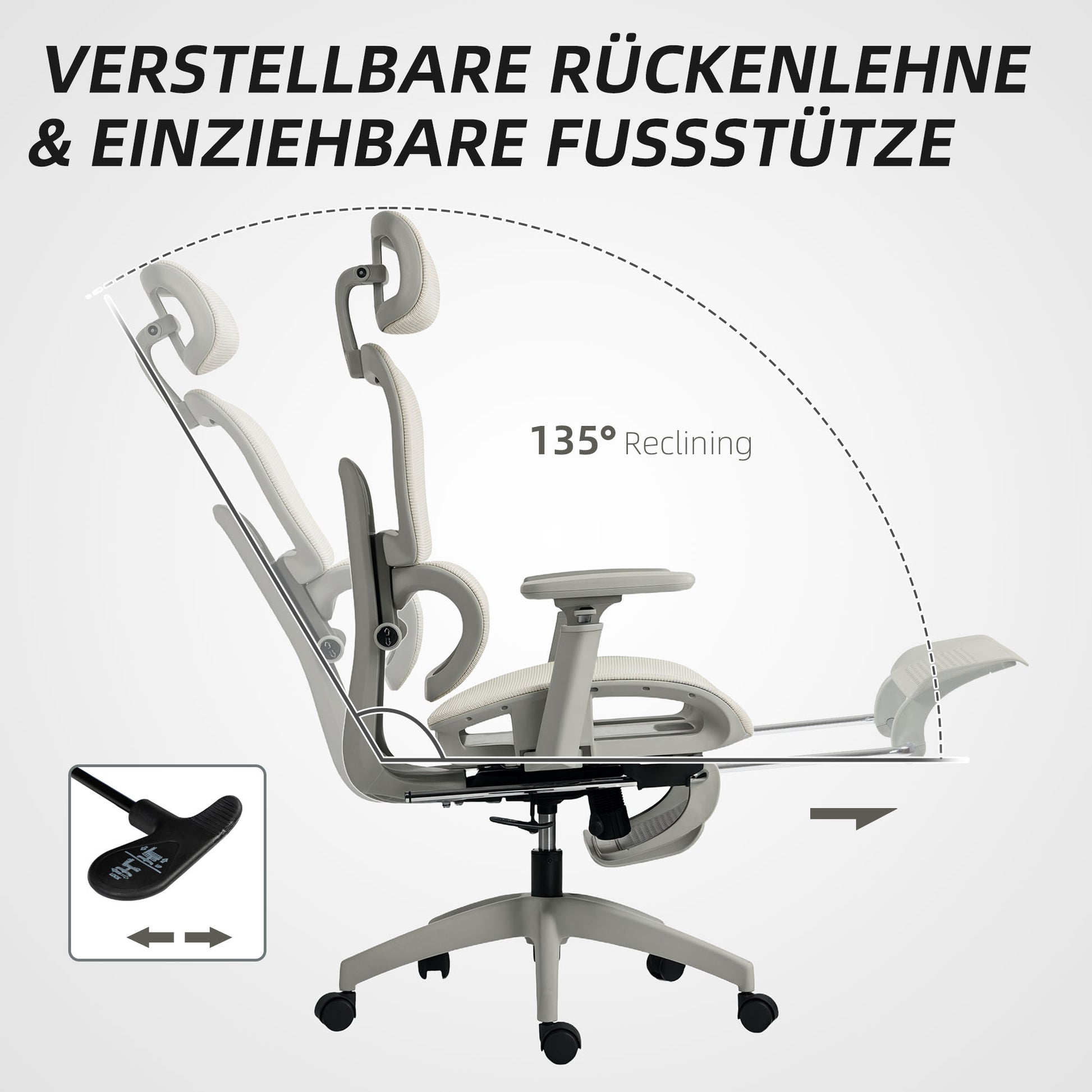 Genießen Sie überragenden Komfort mit dem HOMCOM Bürostuhl. Er verfügt über eine bis zu 135° neigbare Rückenlehne mit vier Arretierungspositionen, für maßgeschneiderte Entspannung. Ein drehbares und höhenverstellbares Kopfteil des Schreibtischstuhls bietet perfekte Nackenunterstützung und die einstellbare Lendenstütze sorgt für Rückenkomfort bei langem Sitzen. Ideal für jedes Büro oder Arbeitszimmer!