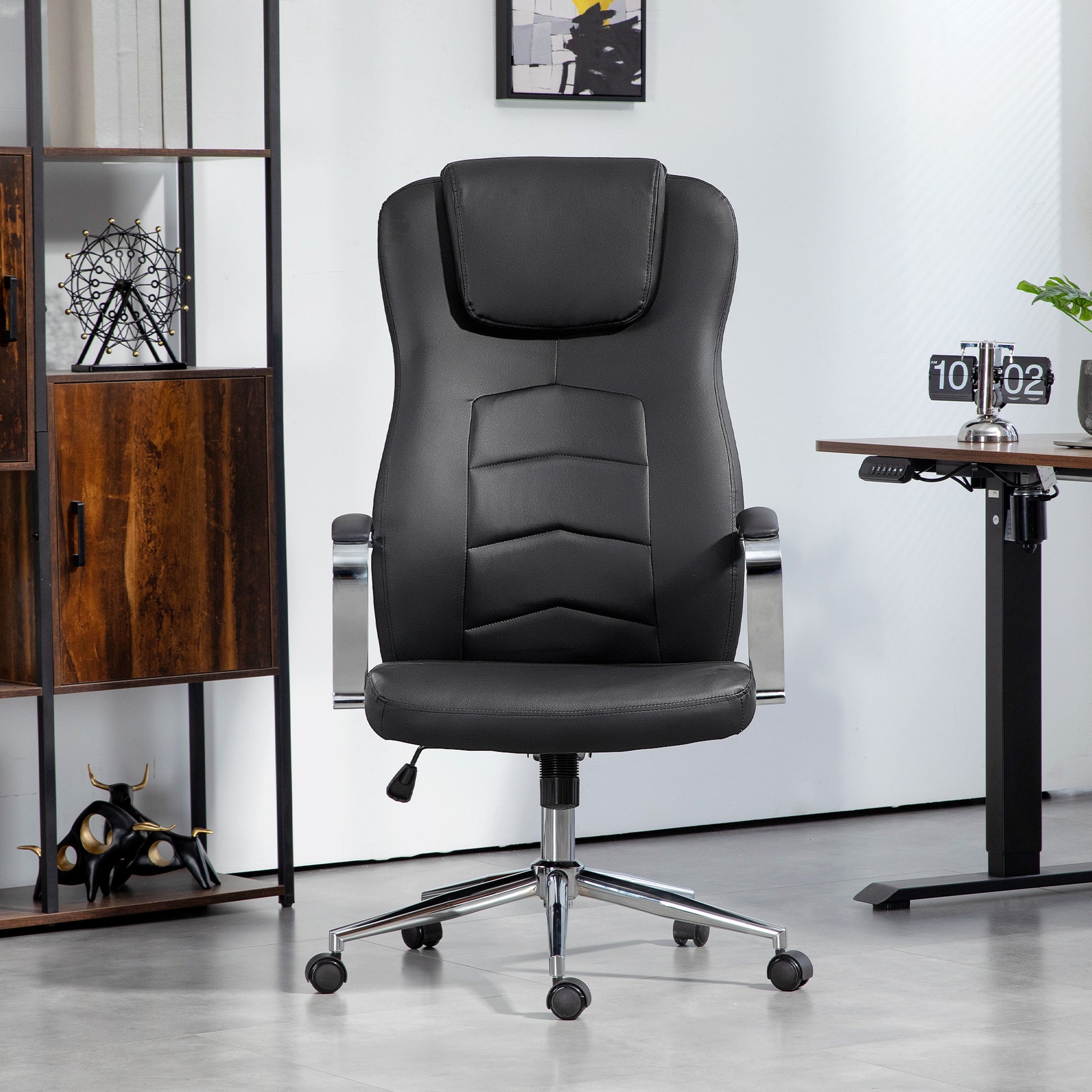 HOMCOM Bürostuhl in Lederoptik, höhenverstellbar, gepolsterte Rückenlehne, Schwarz