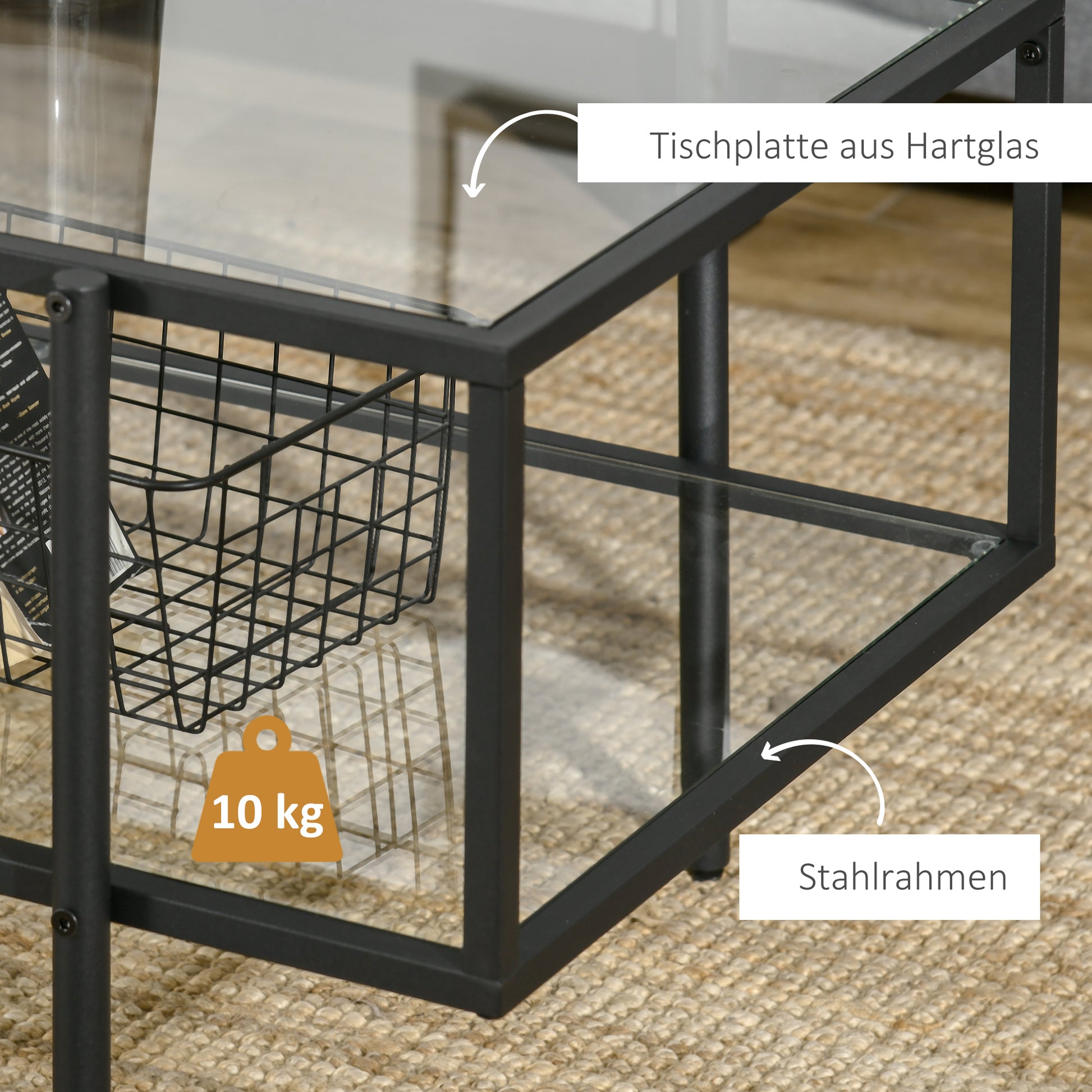 HOMCOM Couchtisch mit Ablage, verstellbare Füße, Stahlrahmen, Glasplatte, 100 x 55 x 45,5 cm, Weiß