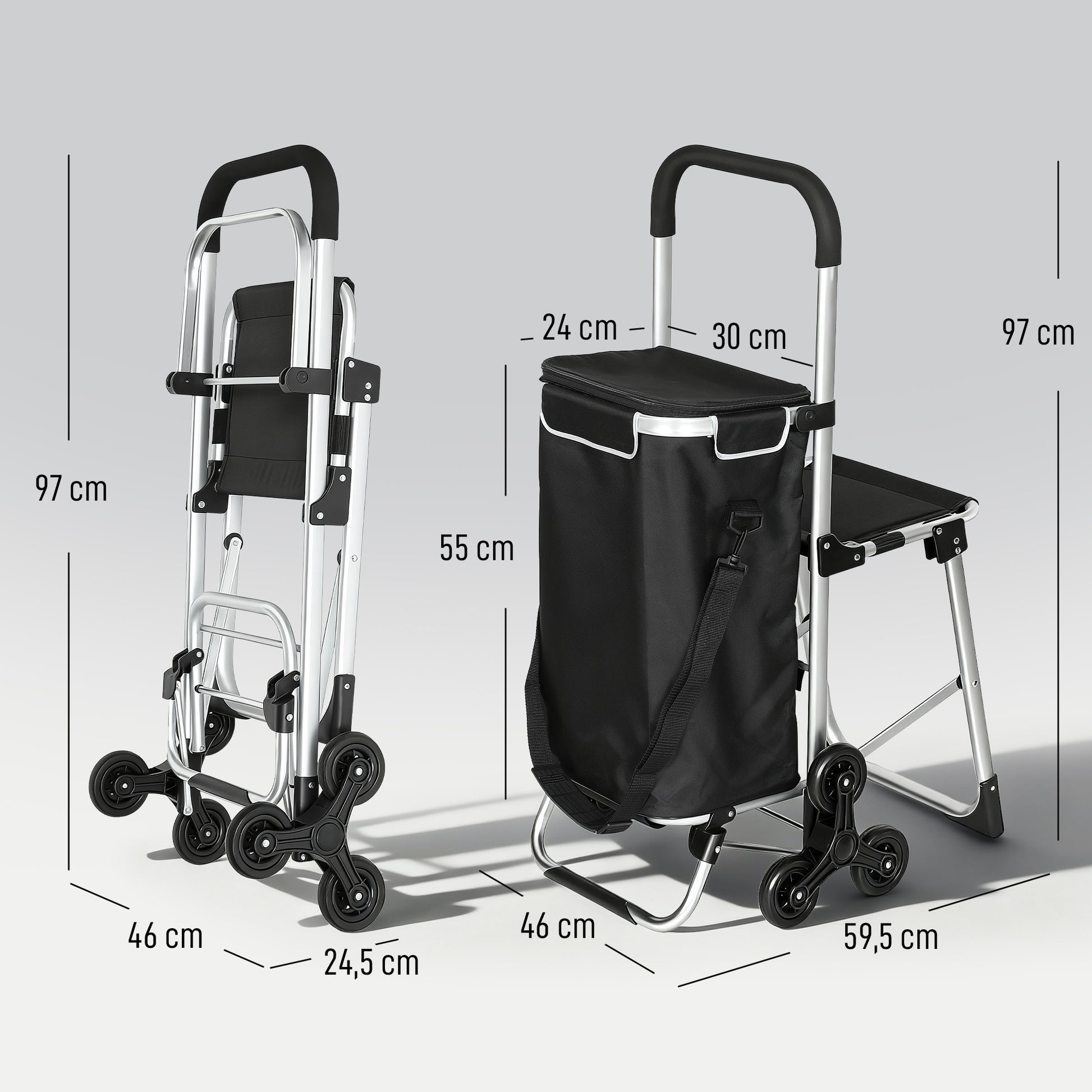 HOMCOM Einkaufstrolley, 40 L Oxford-Tasche, 3-Rad-Design, Aluminiumrahmen, Sitz, Grau