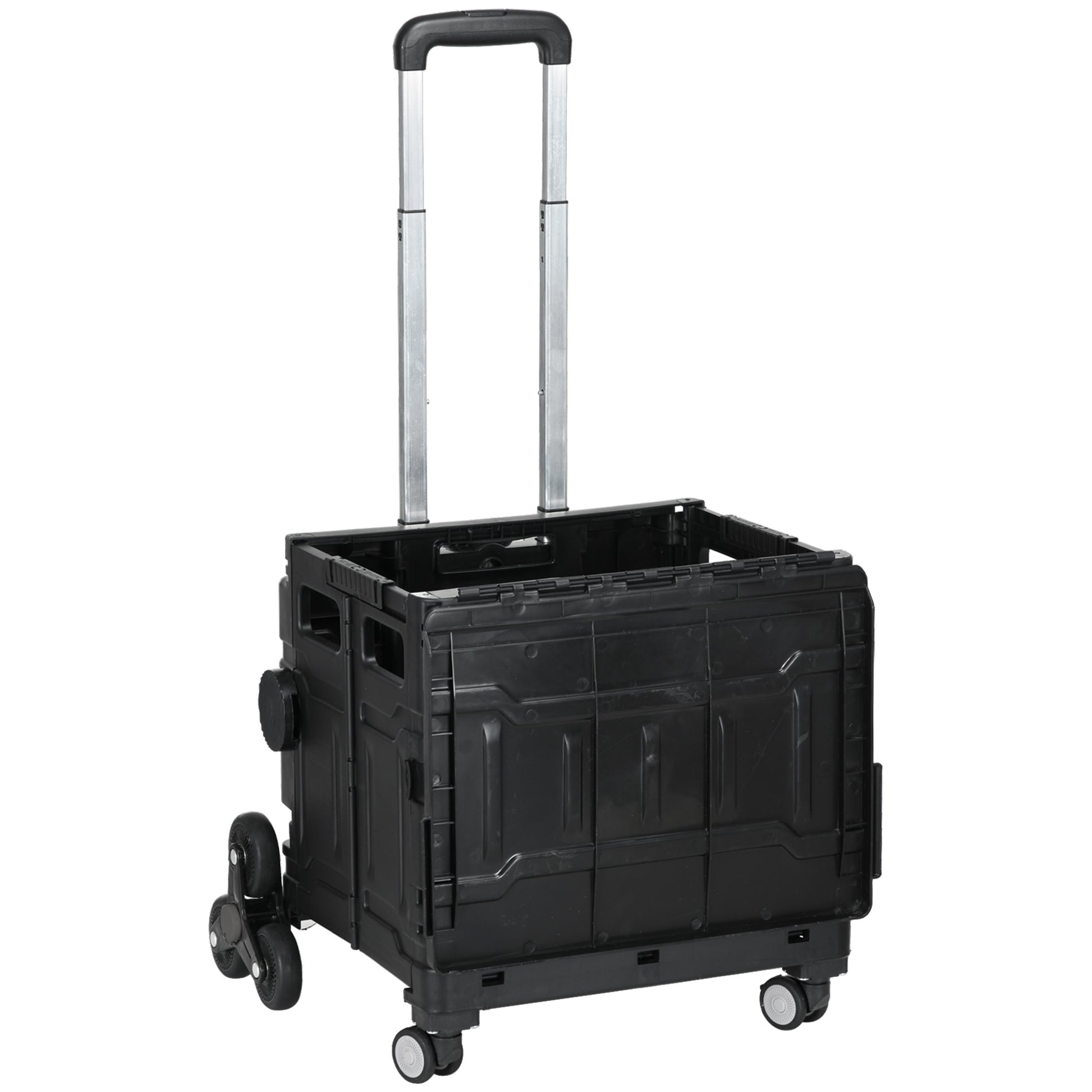 HOMCOM Einkaufswagen Einkaufstrolley, Treppensteiger, klappbar, Teleskopgriff, bis max. 65 Kilo belastbar, Schwarz
