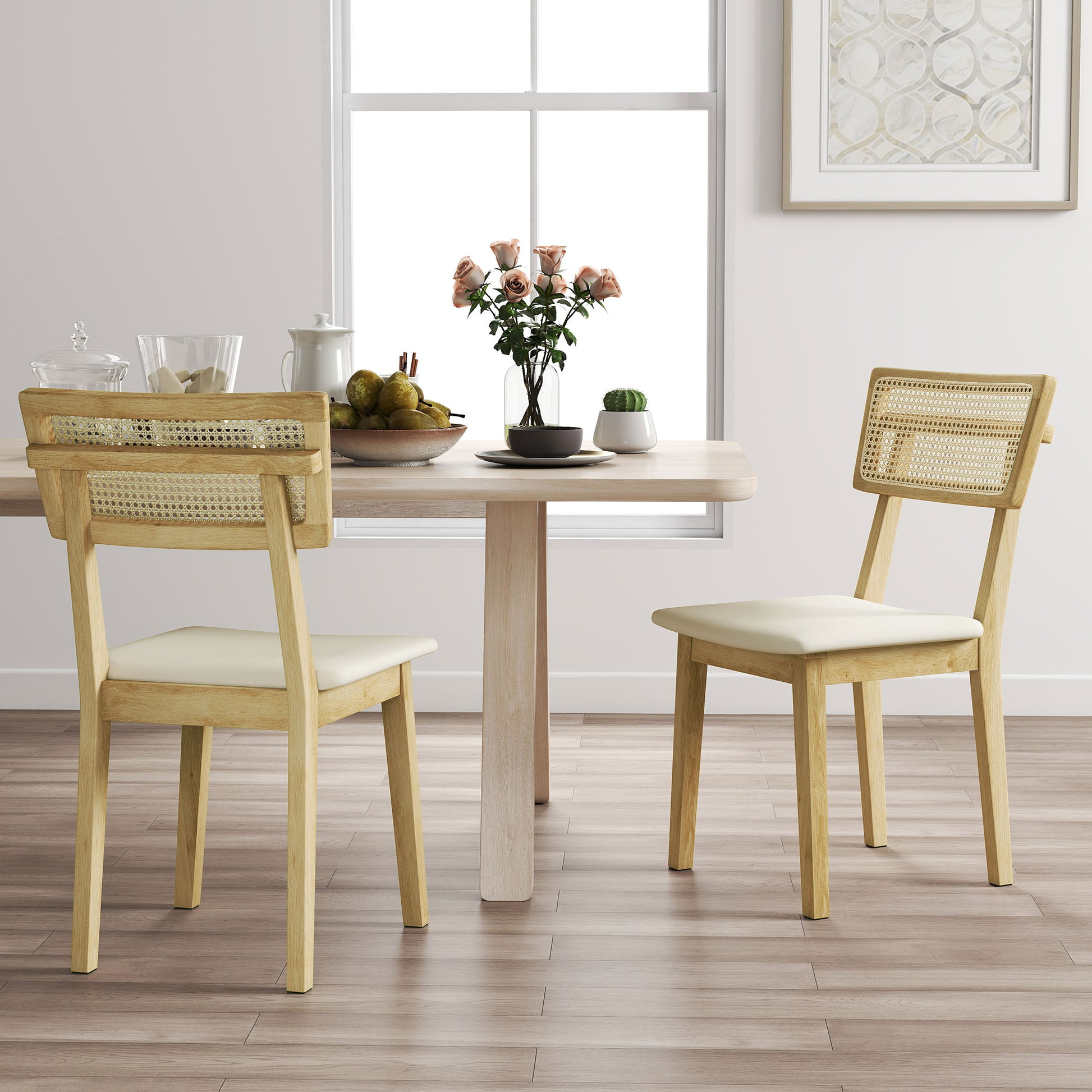 HOMCOM Esszimmerstuhl, Rattan-Rückenlehne, Kunstleder-Sitz, Kautschukholz, Naturholz