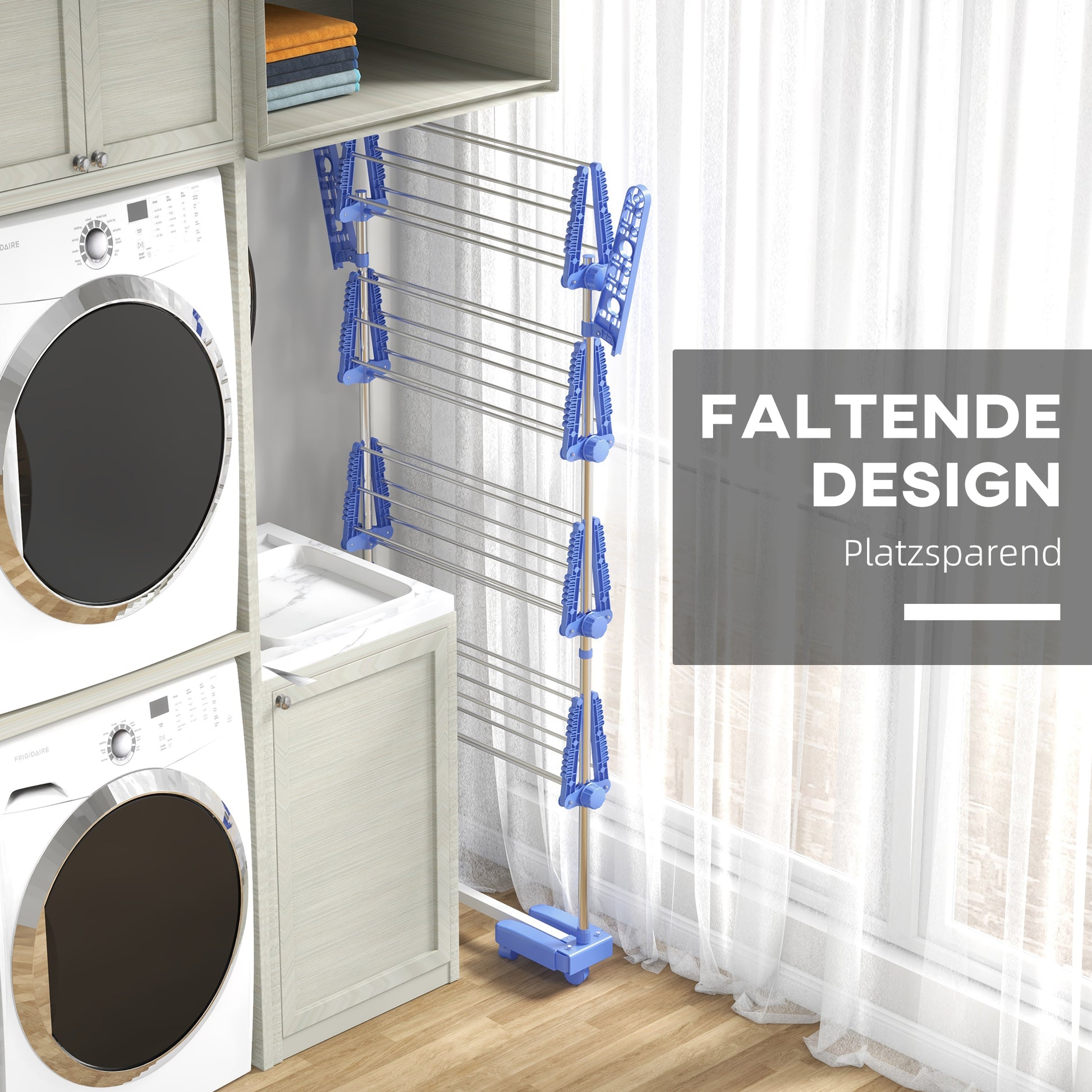 HOMCOM Wäschenständer Wäschetrockner 5 Ebenen, klappbar, One-Klick-System, 142 cm x 55 cm x1 72 cm, Blau + Silber