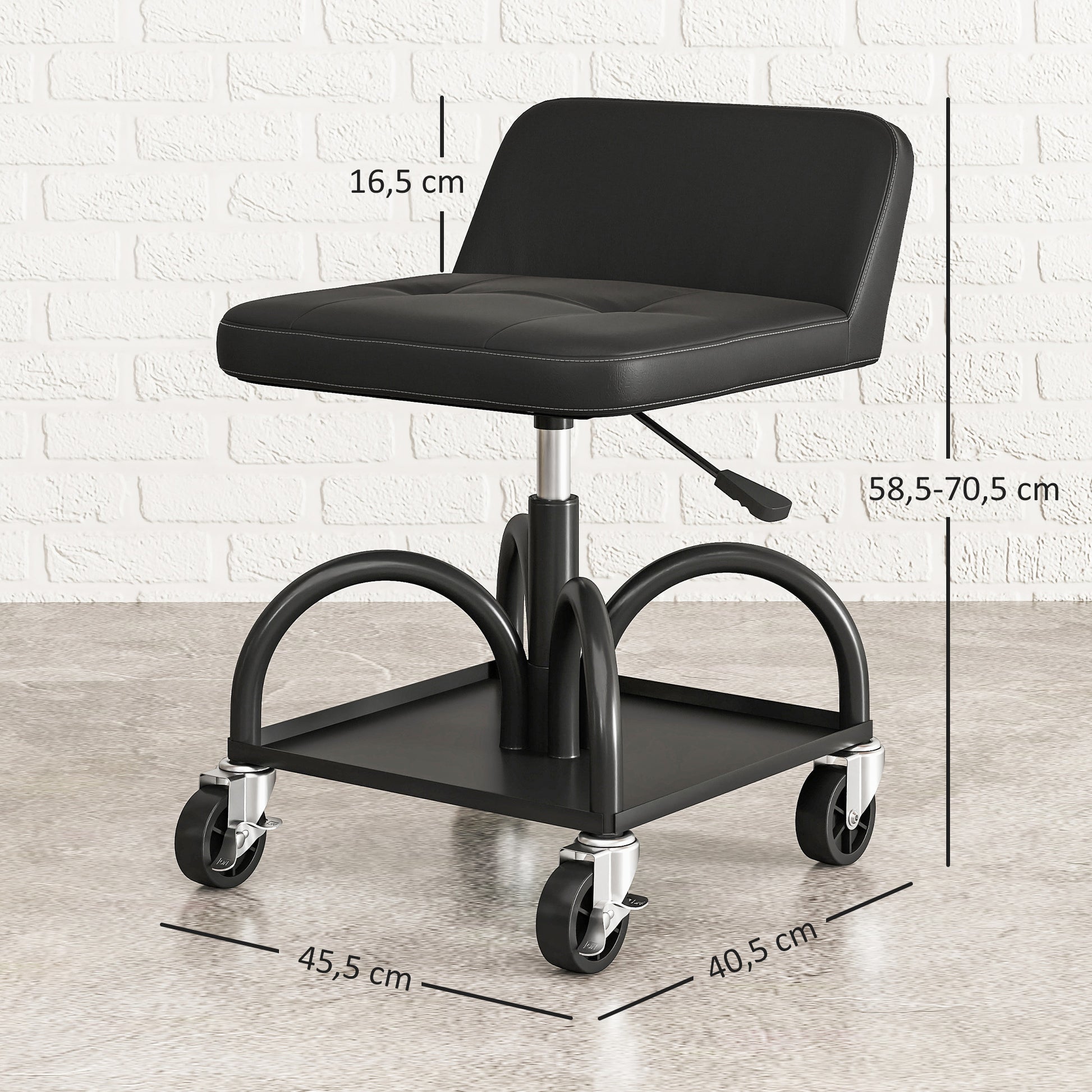 HOMCOM Werkstatthocker mit Rollen Ablagefläche, 58,5 cm hoch Rollhocker bis 135 kg belastbar Schwarz