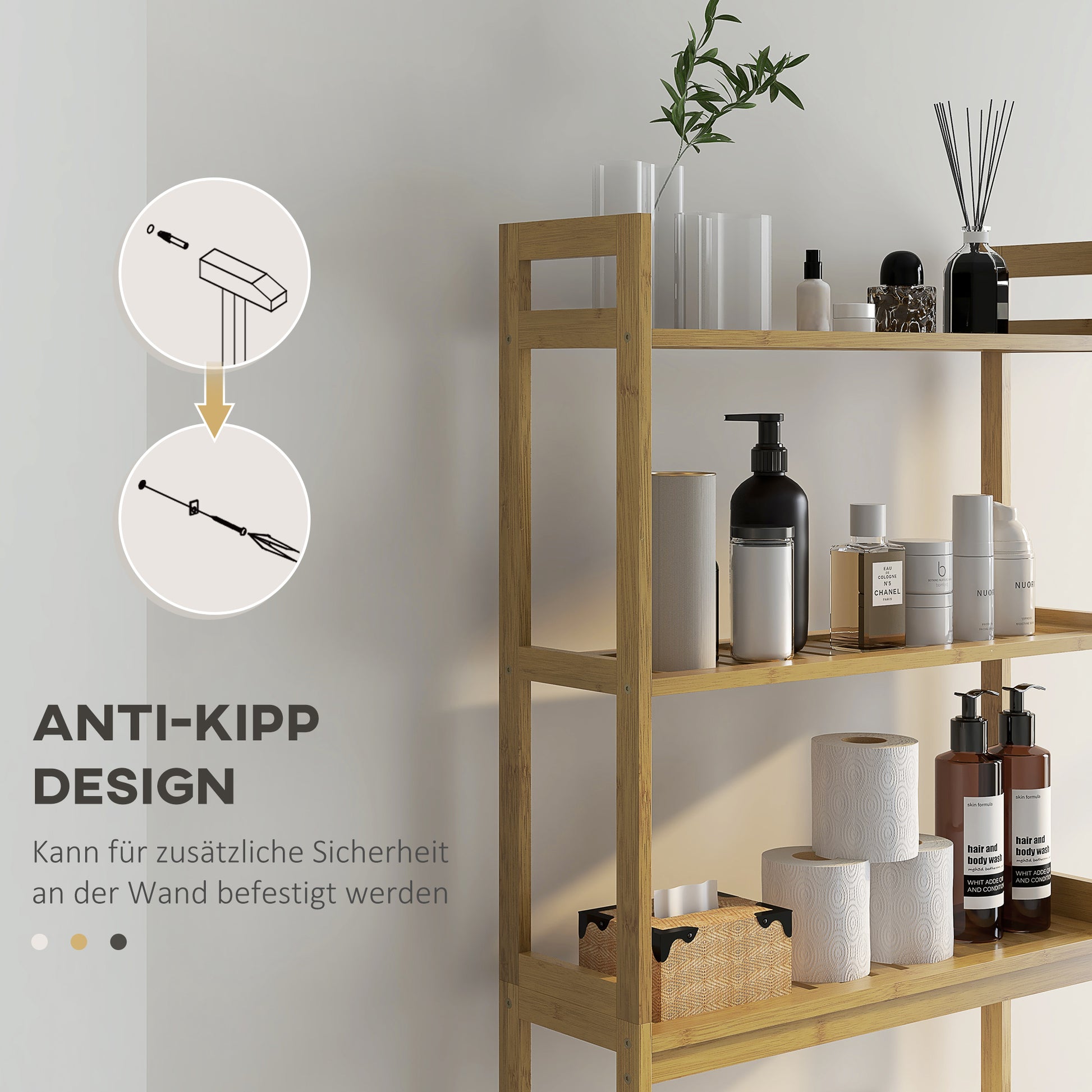 kleankin Badezimmerregal Badregal Toilettenregal, 3 Regale, wasserbeständig, 68 cm x 20 cm x 165 cm, Natur