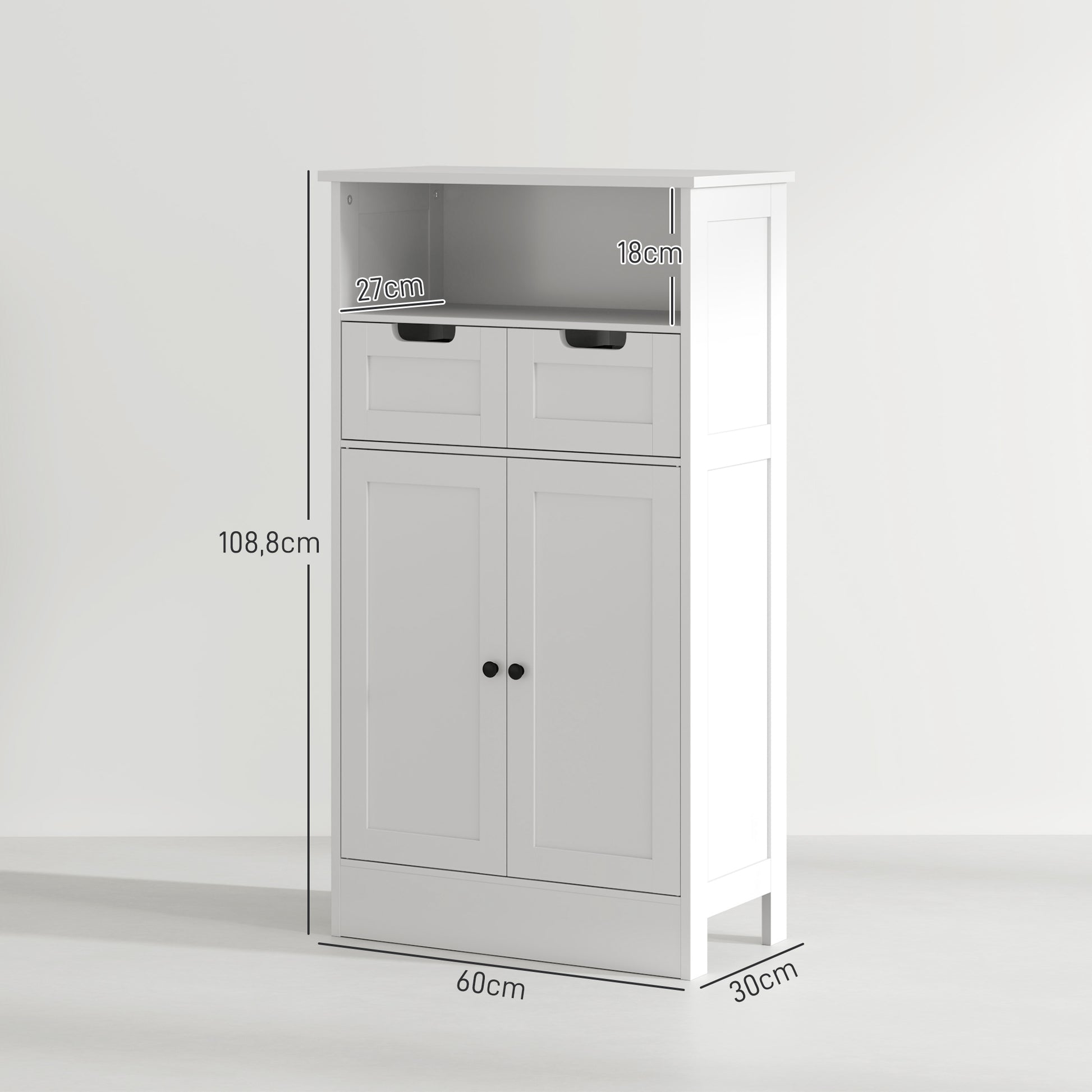 kleankin Badezimmerschrank mit 2 Schubladen, Tür, 60 x 30 x 109 cm, Weiß