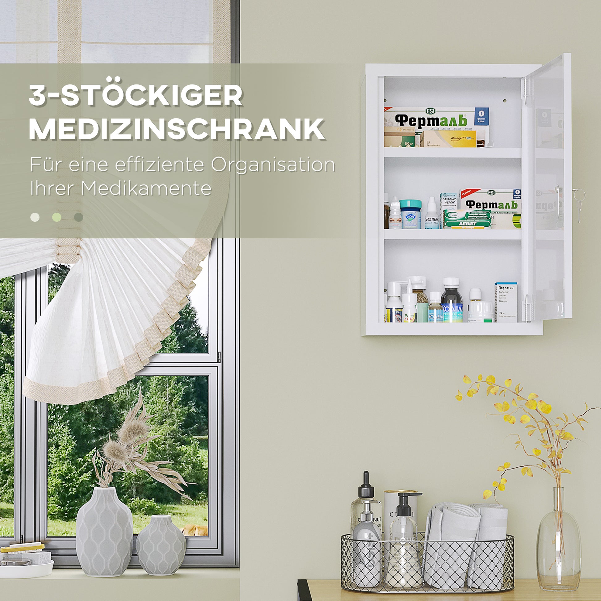 kleankin Medizinschrank, abschließbar, Einlegeböden, Stahlgehäuse, 30x14x46 cm, Weiß