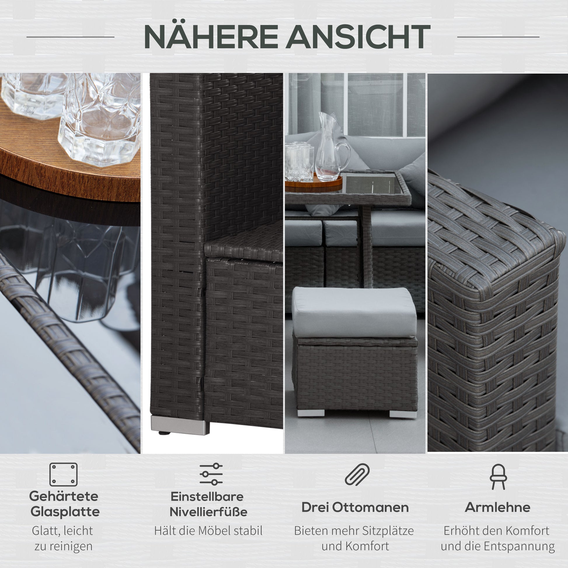 - ✔ Feuer- und wetterfestes Kunstrattan für schöne, markante Optik