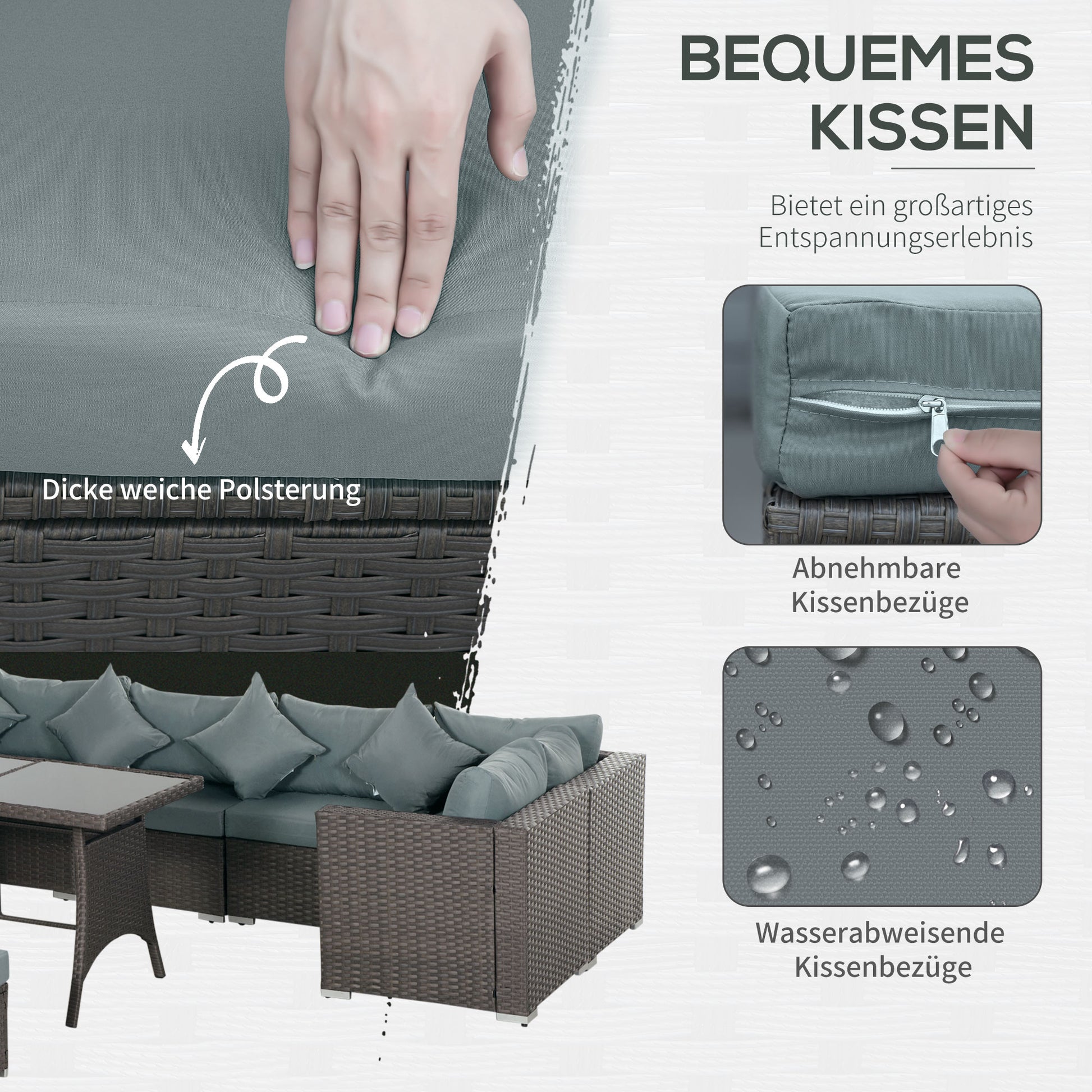 Outsunny 10-tlg. Gartengarnitur in Rattanoptik, mit Sitz- und Rückenkissen, rostfreier Metallrahmen, dunkelgrau