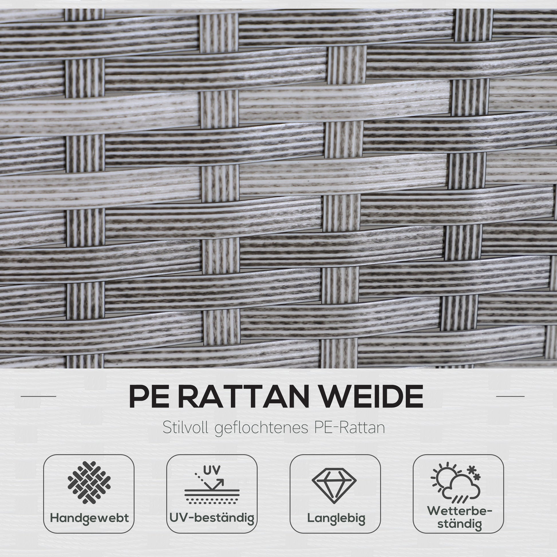 Outsunny 5-tlg. Gartenmöbel Set, Rattan Sitzgruppe mit Fußhocker, Metall, Grau, 142 x 60 x 75 cm