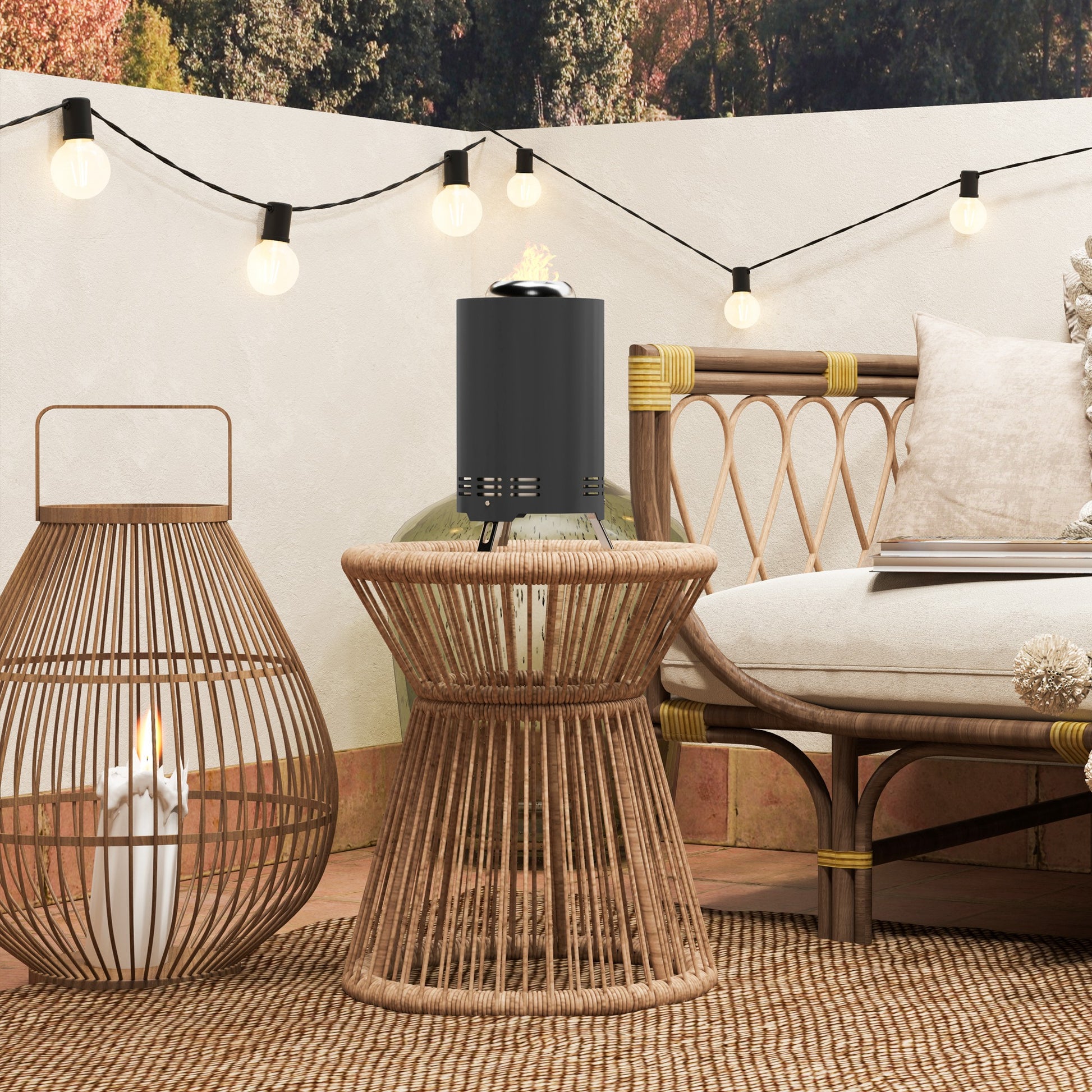 - ✔ Pulverbeschichtete Edelstahlstruktur der Feuerstelle ist robust und hitzebeständig