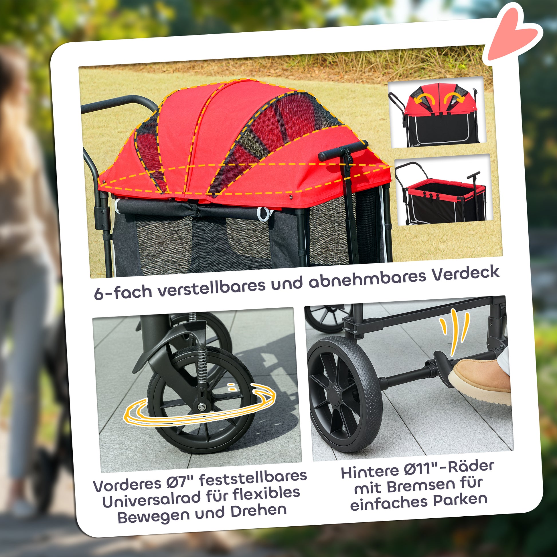 PawHut Hundewagen Hundebuggy klappbar für Hunde & Katzen bis 30 kg 110 x 65 x 102 cm Rot