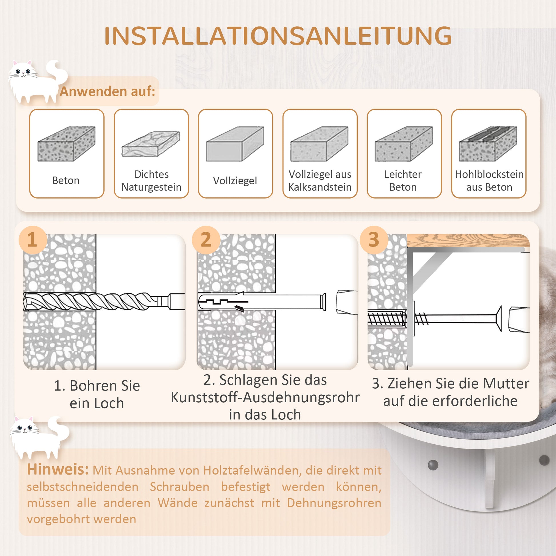 - ✔ Wandmontierbares Design der Katzenliege spart Bodenfläche und bietet Ihrer Katze einen eigenen Entspannungsort