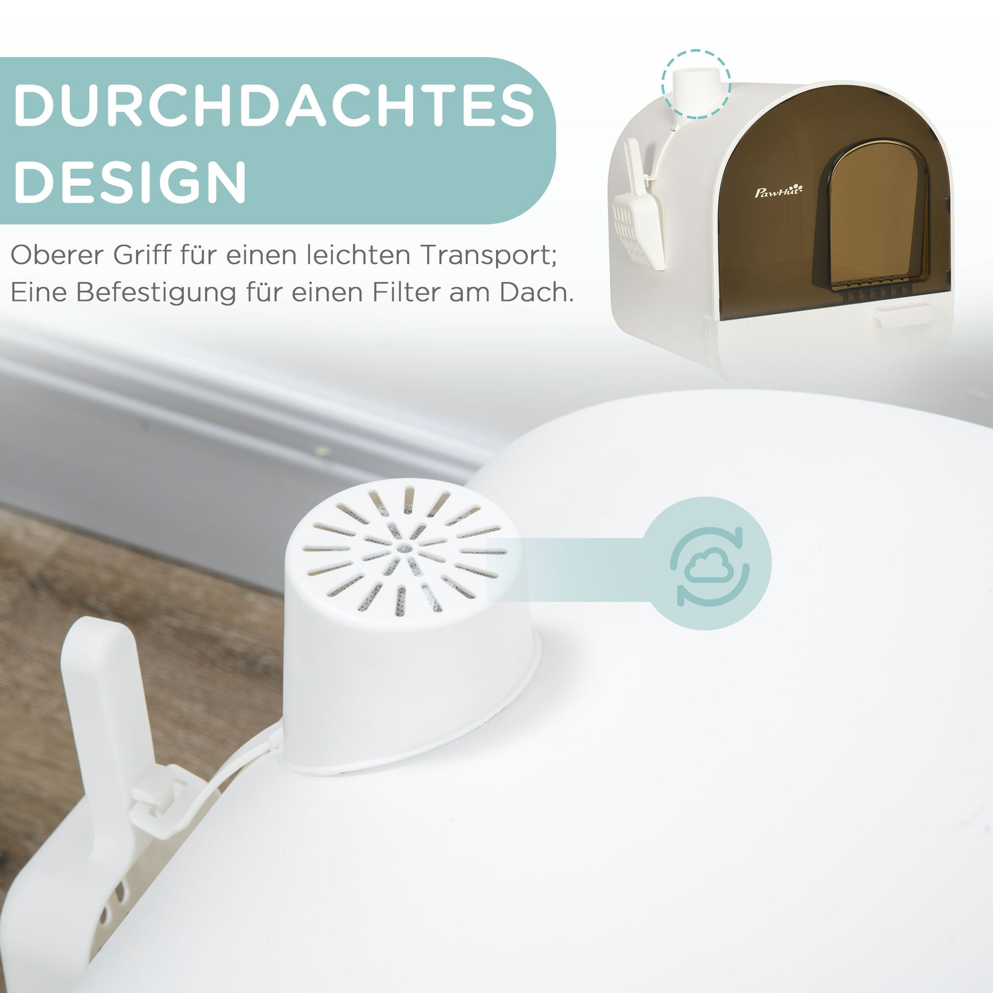 PawHut Katzentoillete mit Filter, 1 Ersatzfilter, 1 Bodenmatte, 43 cm x 44 cm x 47 cm, Schwarz + Weiß