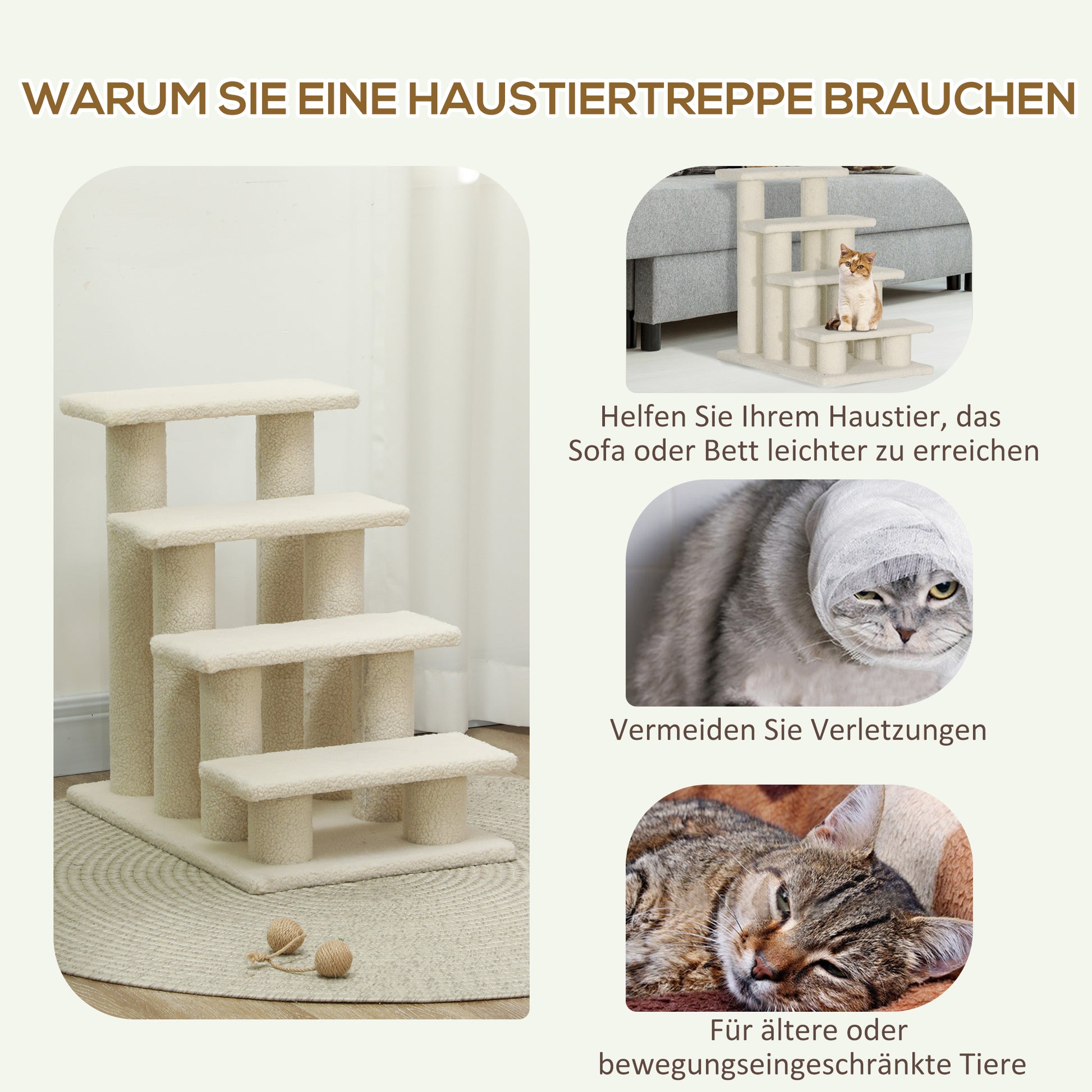 PawHut Katzentreppe 4 Stufen Tiertreppe Treppe für Katze Haustiertreppe Hundetreppe aus Plüsch 61 x 41 x 60 cm Cremeweiß