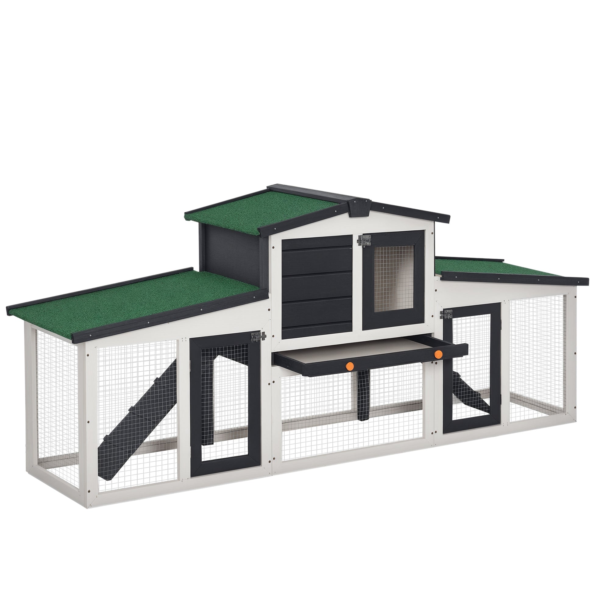 PawHut Kleintierstall mit 2 Freigehegen wetterbeständig Tannenholz Weiß + Grün