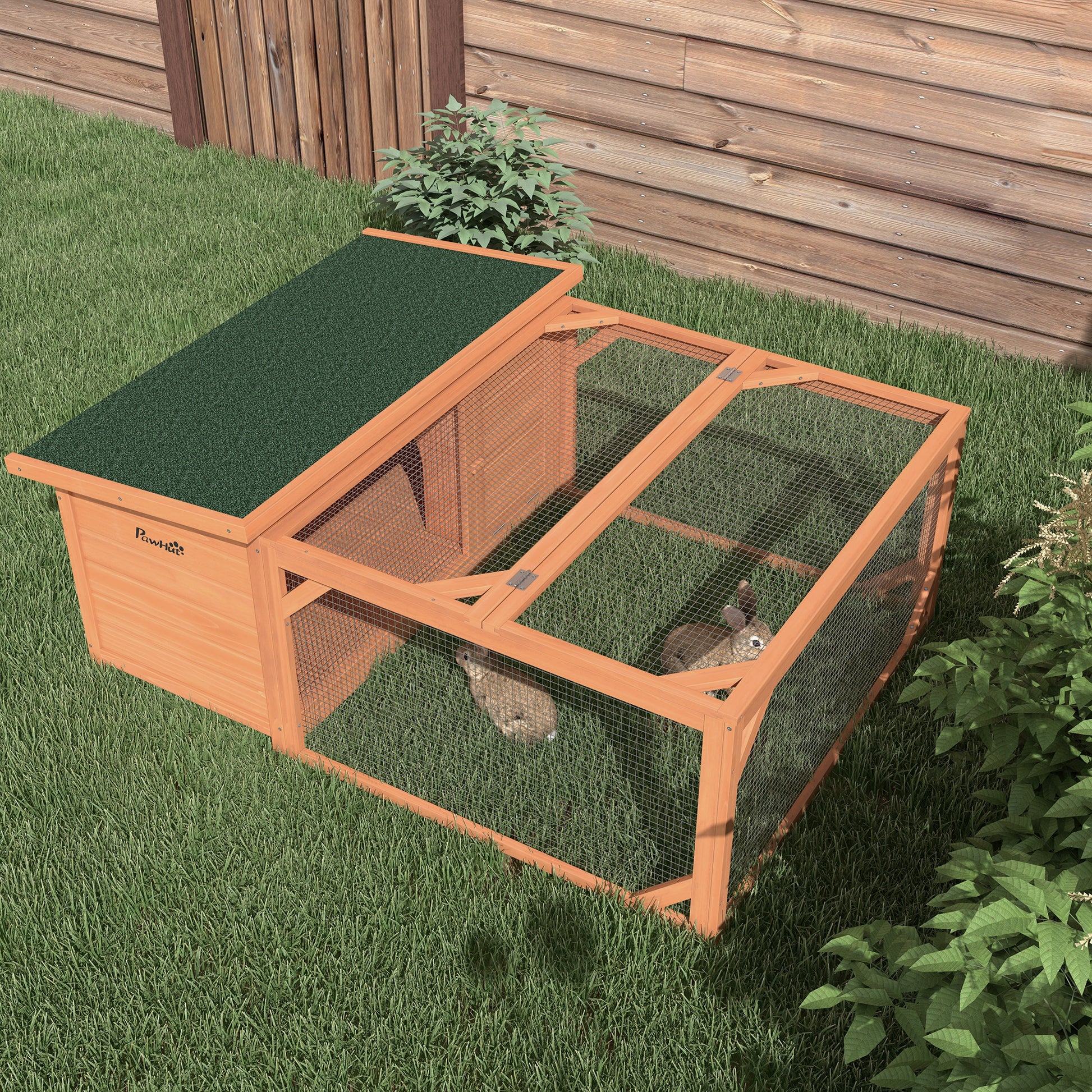 PawHut Kleintierstall mit Freigehege, herausnehmbare Bodenwanne, wetterbeständig, 125,5 cm x 100 c x 49 cm Grün + Natur