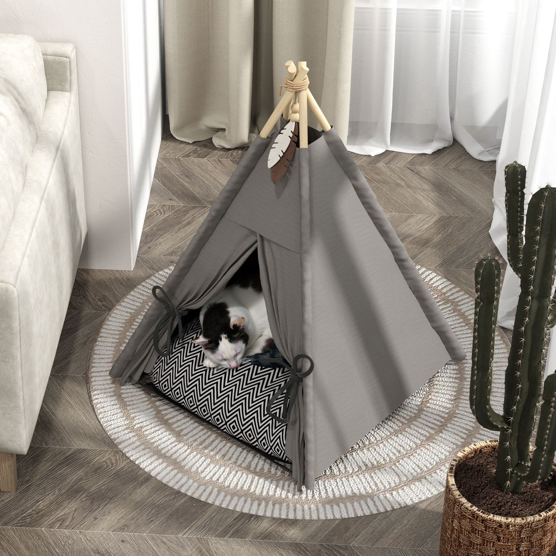 PawHut Tipi-Zelt für Haustiere, Tierbett im Tipi-Design, Katzenzelt mit Kissen, Hundebett zum Schlafen, Katzenbett, Grau
