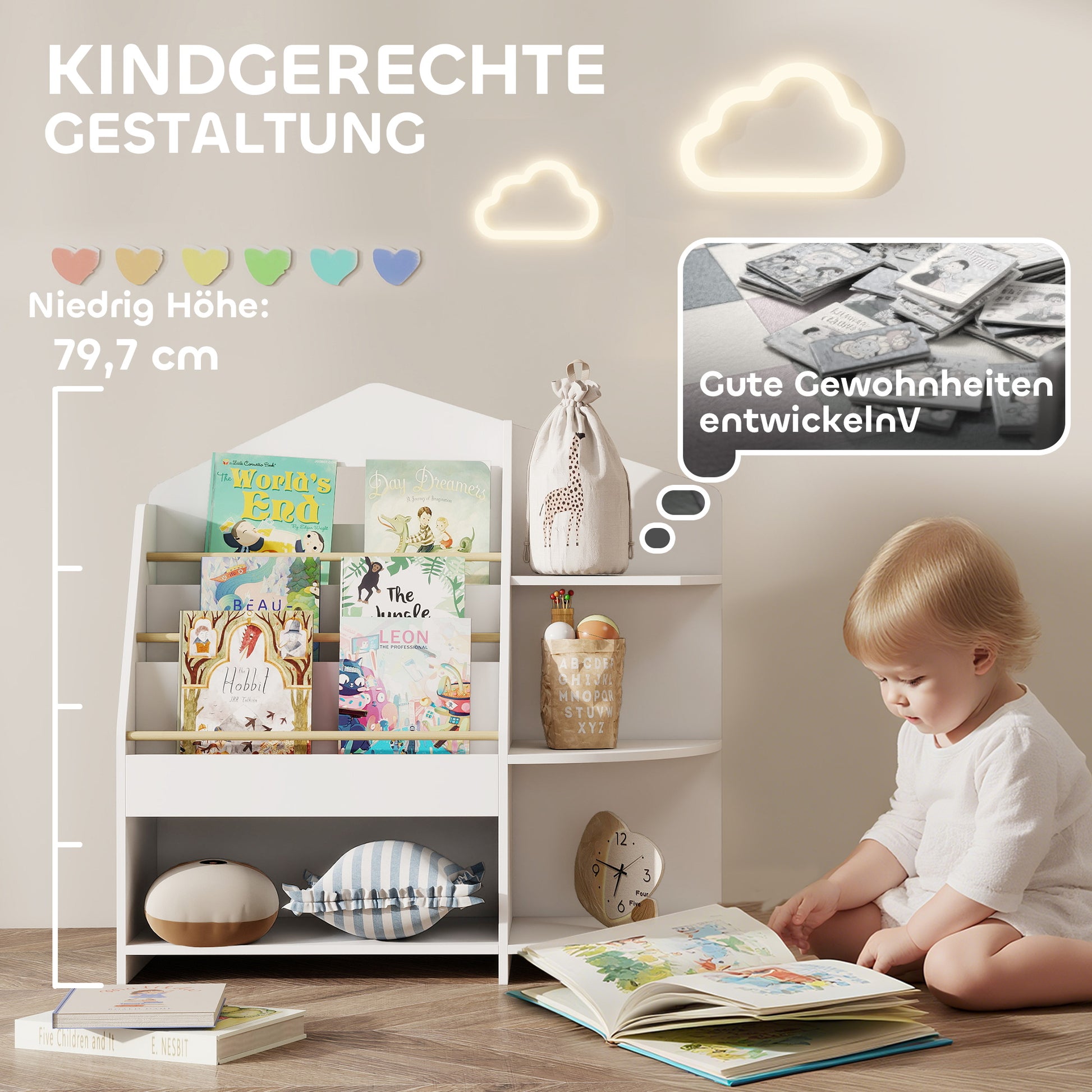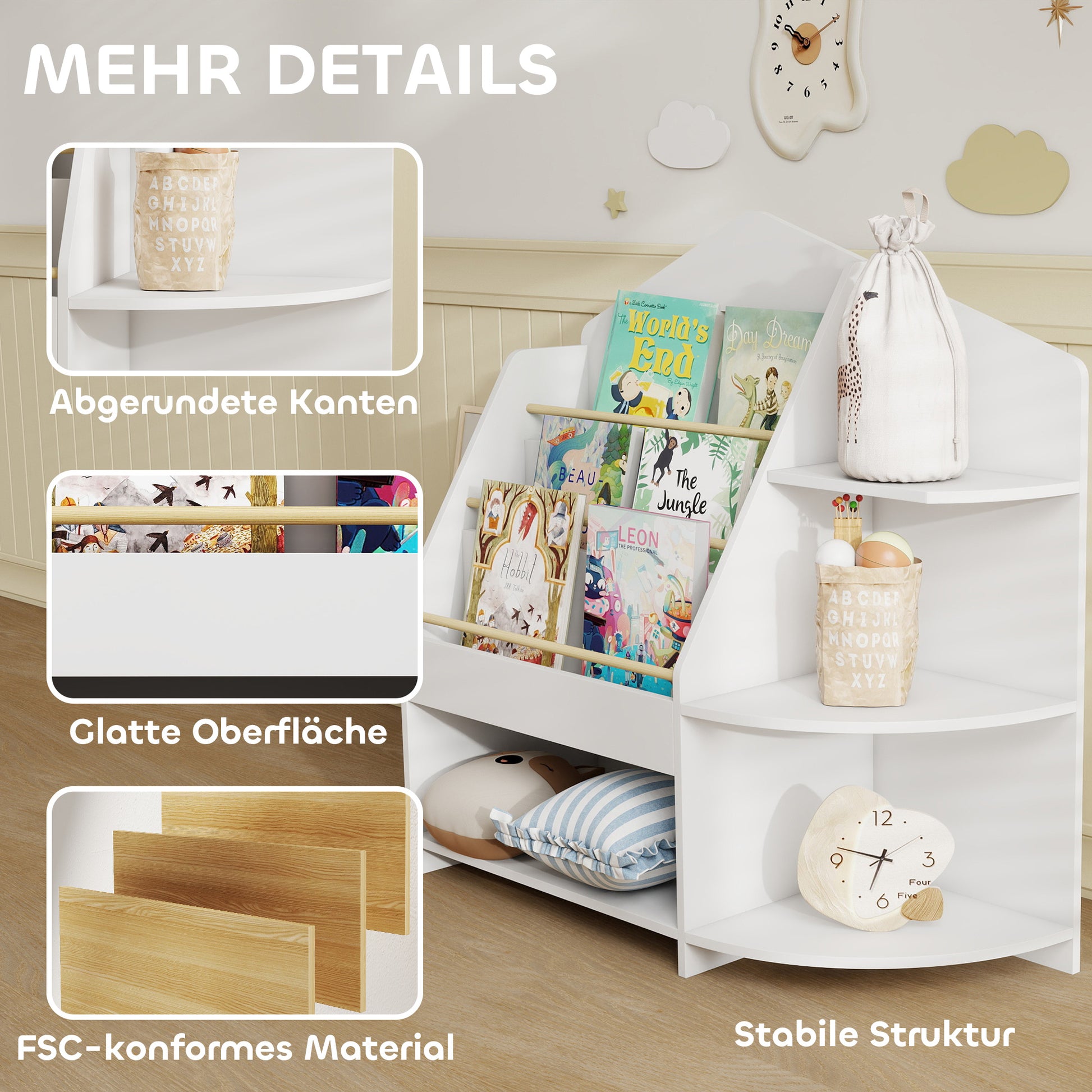 - ✔ Das von Montessori inspirierte Design ermöglicht es Kindern, leicht Bücher zu greifen und fördert die Liebe zum Lesen