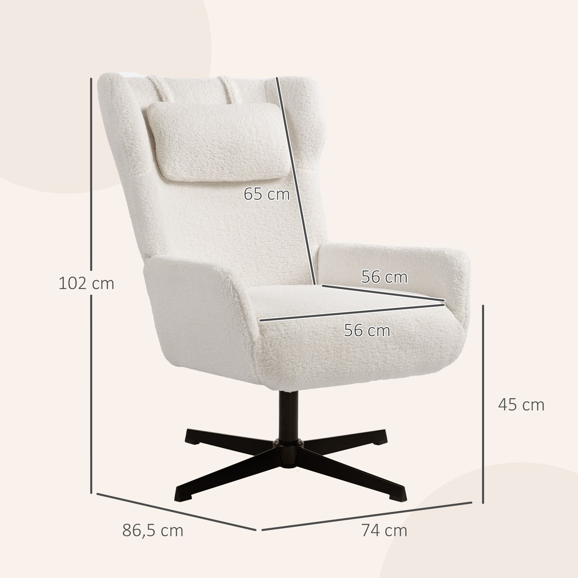 HOMCOM Akzentstuhl, Polstersessel mit Fleece-Bezug, Drehfuß, Metallrahmen, Cremeweiß