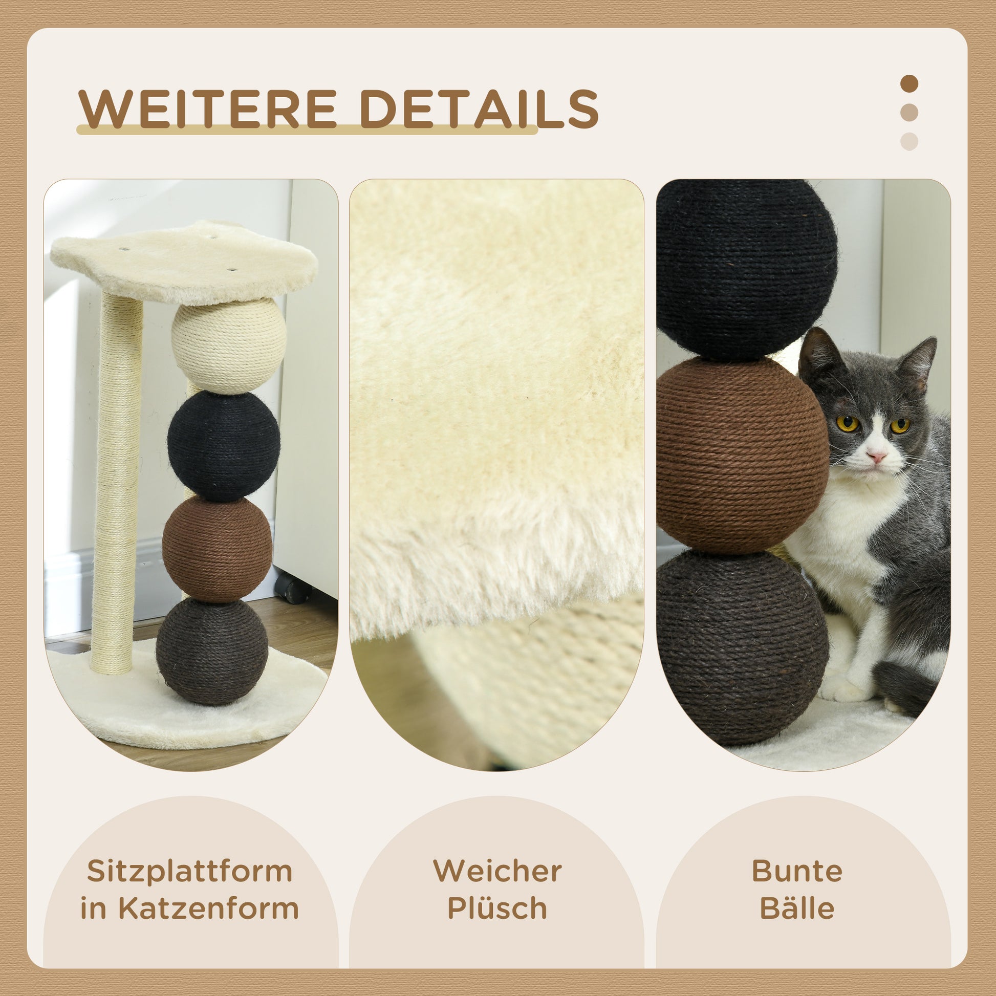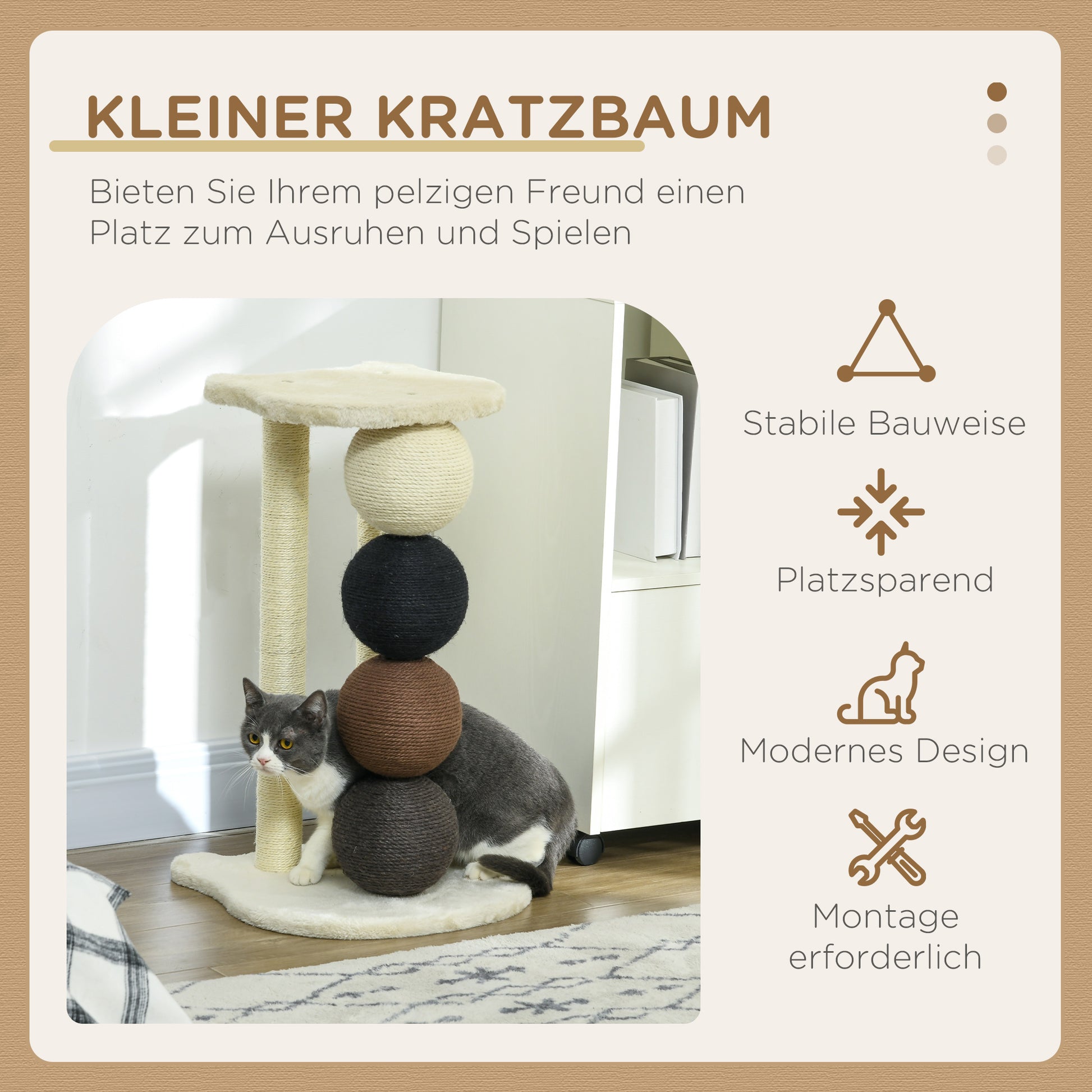 PawHut Kratzsäule für Katzen, Katzenkratzbaum Kratzbaum mit Plattform, Kratzstamm mit 2 Sisalpfosten und 4 Sisalbällen, Katzenkratzer Spielzeug, 38 x 38 x 64 cm