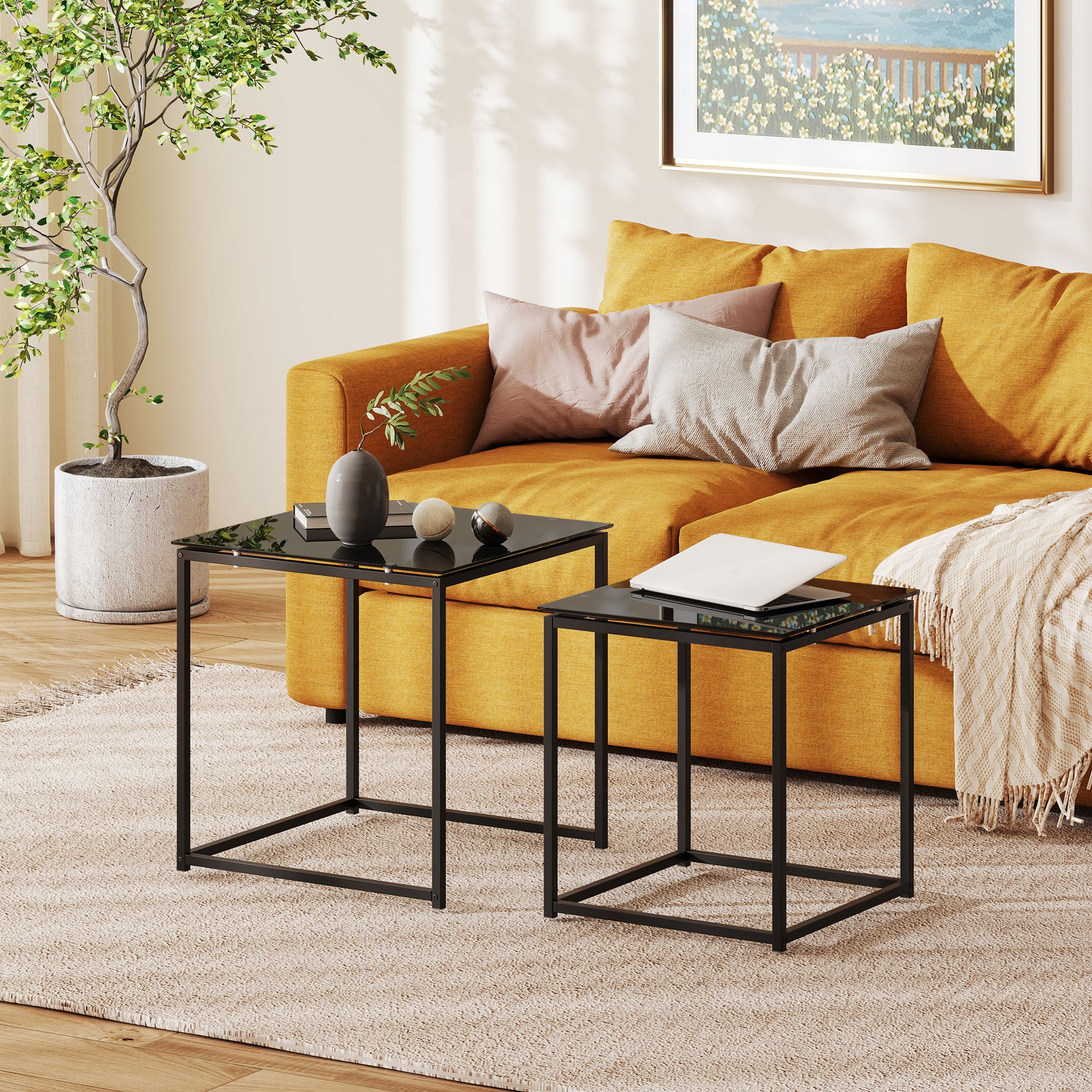 HOMCOM 2er-Set Beistelltische, modernes Design, stapelbar, Glastisch, Schwarz