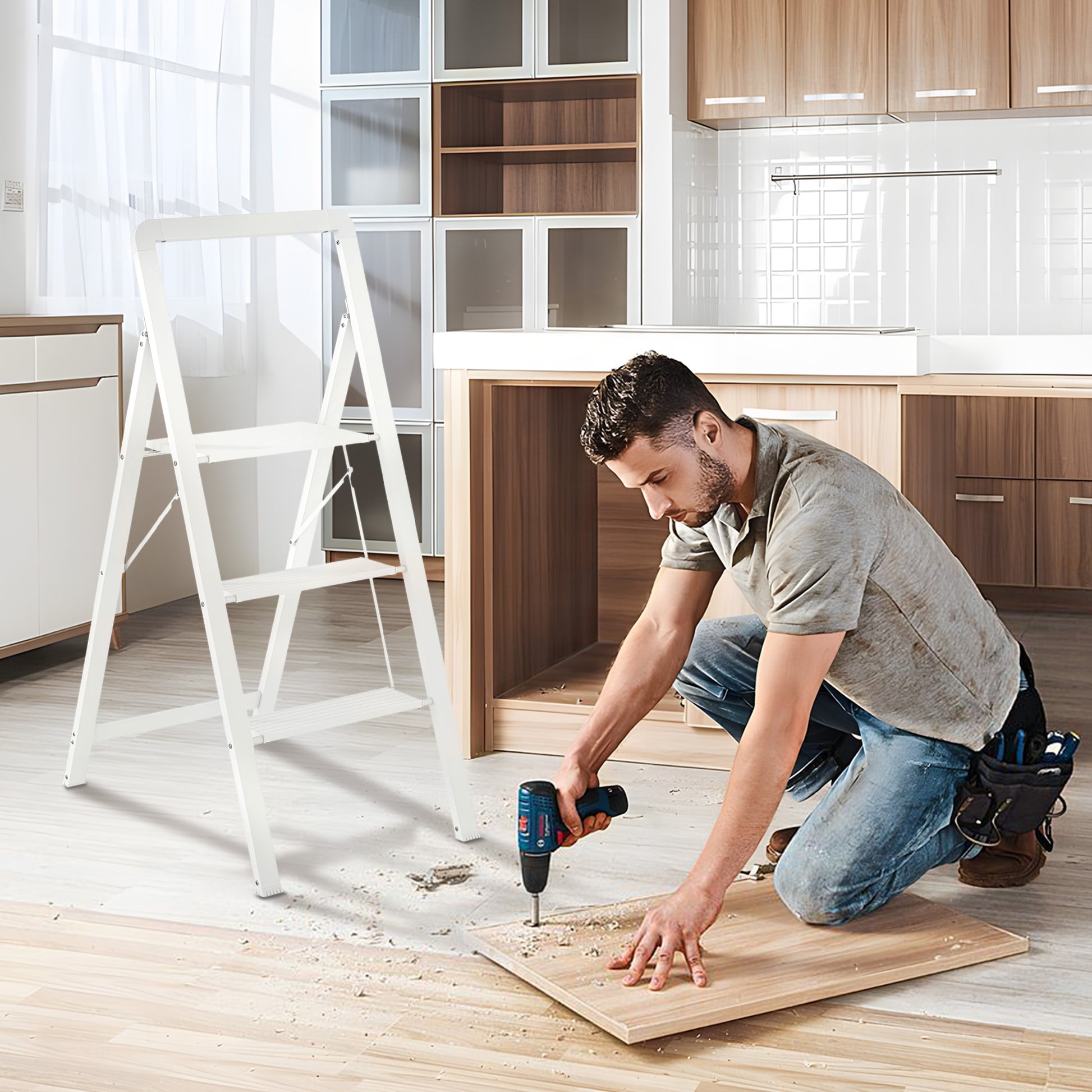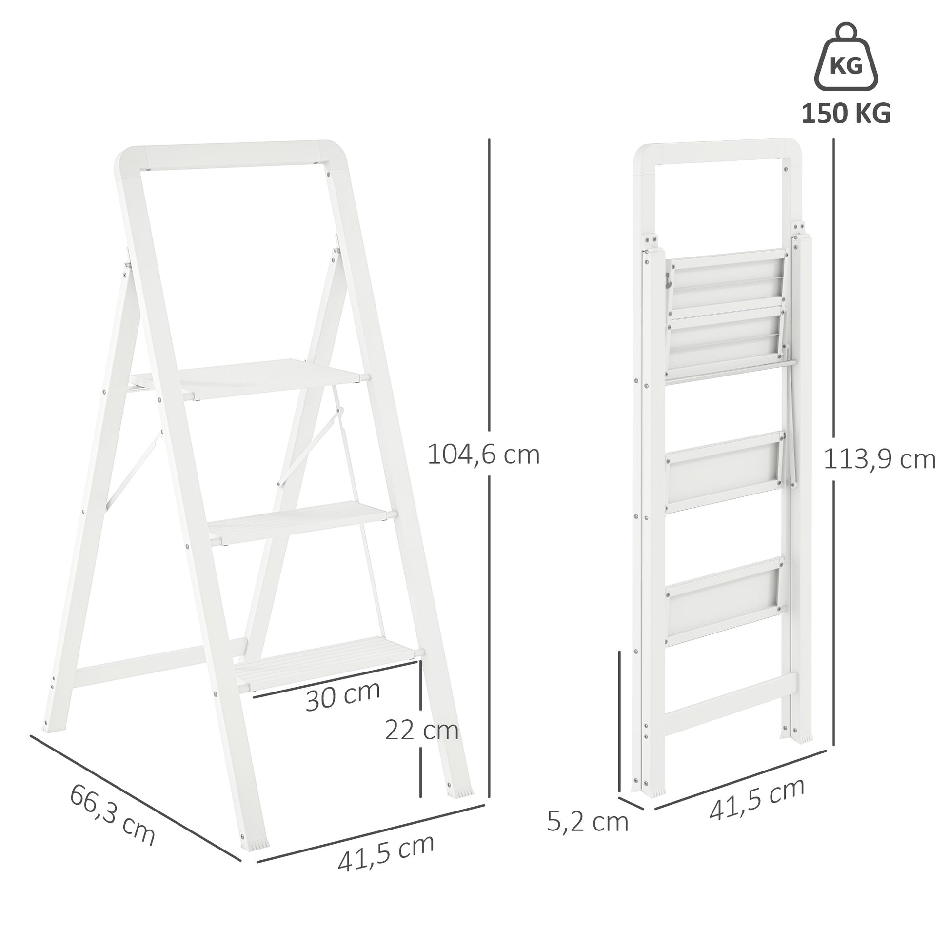 HOMCOM 3-stufige Trittleiter, Aluminum faltbar, rutschfeste Plattform, Weiß