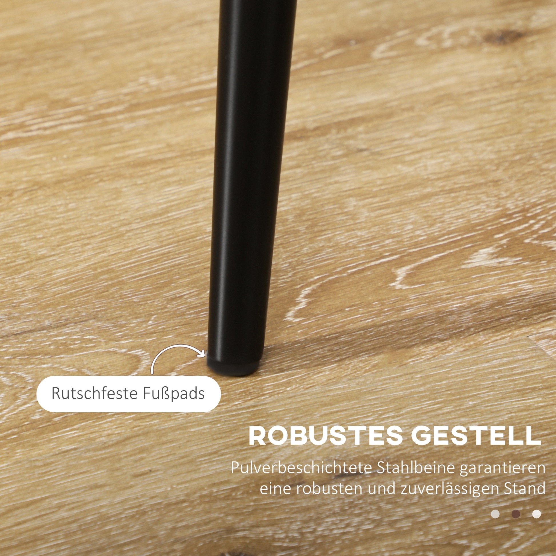 Bringen Sie frischen Wind in Ihre Wohnung mit diesem Stuhlset von HOMCOM. Es besteht aus 4 Esszimmerstühlen in Velours-Optik. Dieses Essstuhlset verleiht ihrem Esszimmer jede Menge Stil. Die weiche Polsterung und das solide Gestell aus Stahl bieten Ihnen viel Komfort, während Sie sitzen. Lehnen Sie sich zurück und entspannen Sie sich auf der gepolsterten Sitzfläche und der geschwungenen Rückenlehne.