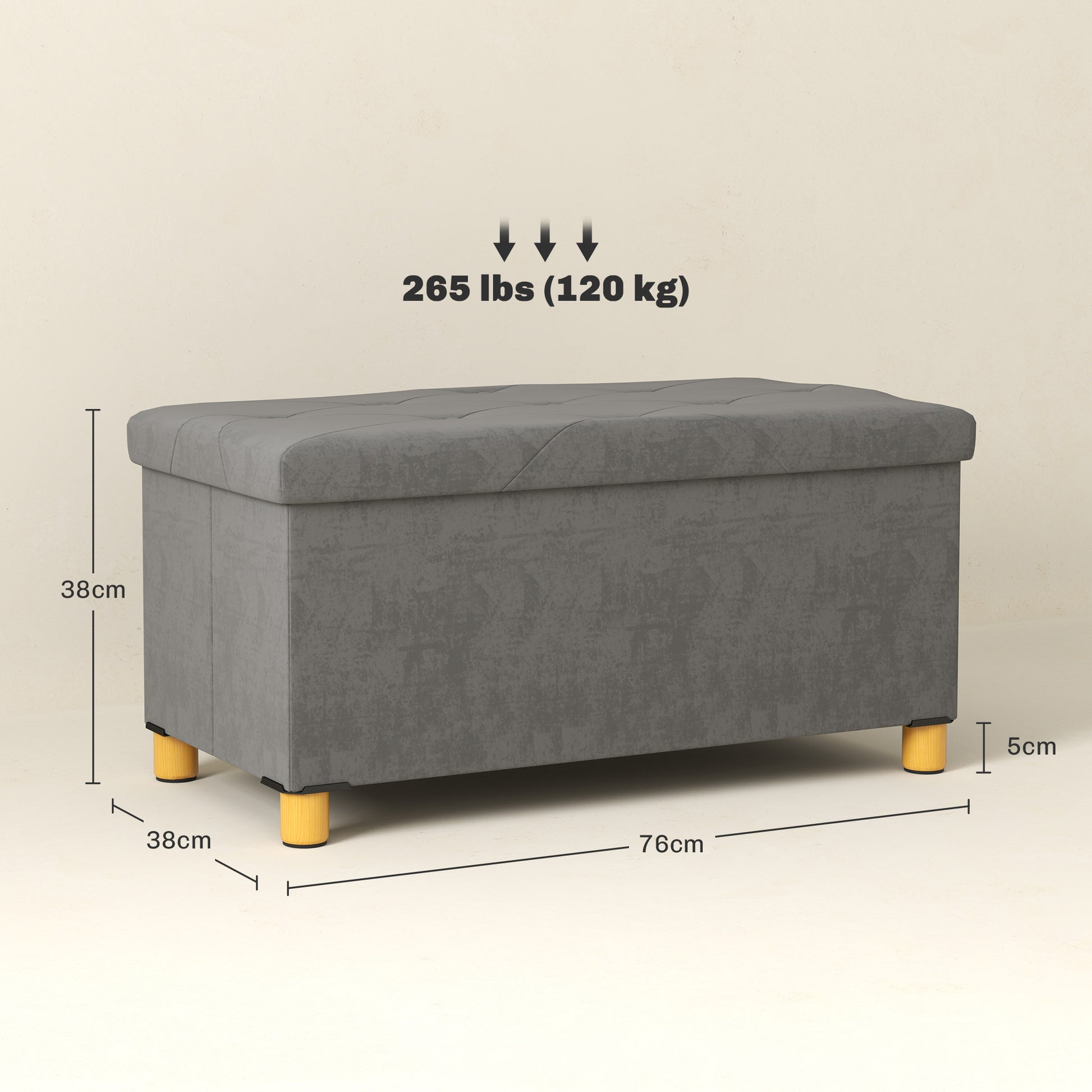 HOMCOM 67 Liter Aufbewahrungsbank, mit Stauraum und Deckel, weicher Bezug in Samtoptik, für verschiedene Räume, Grau