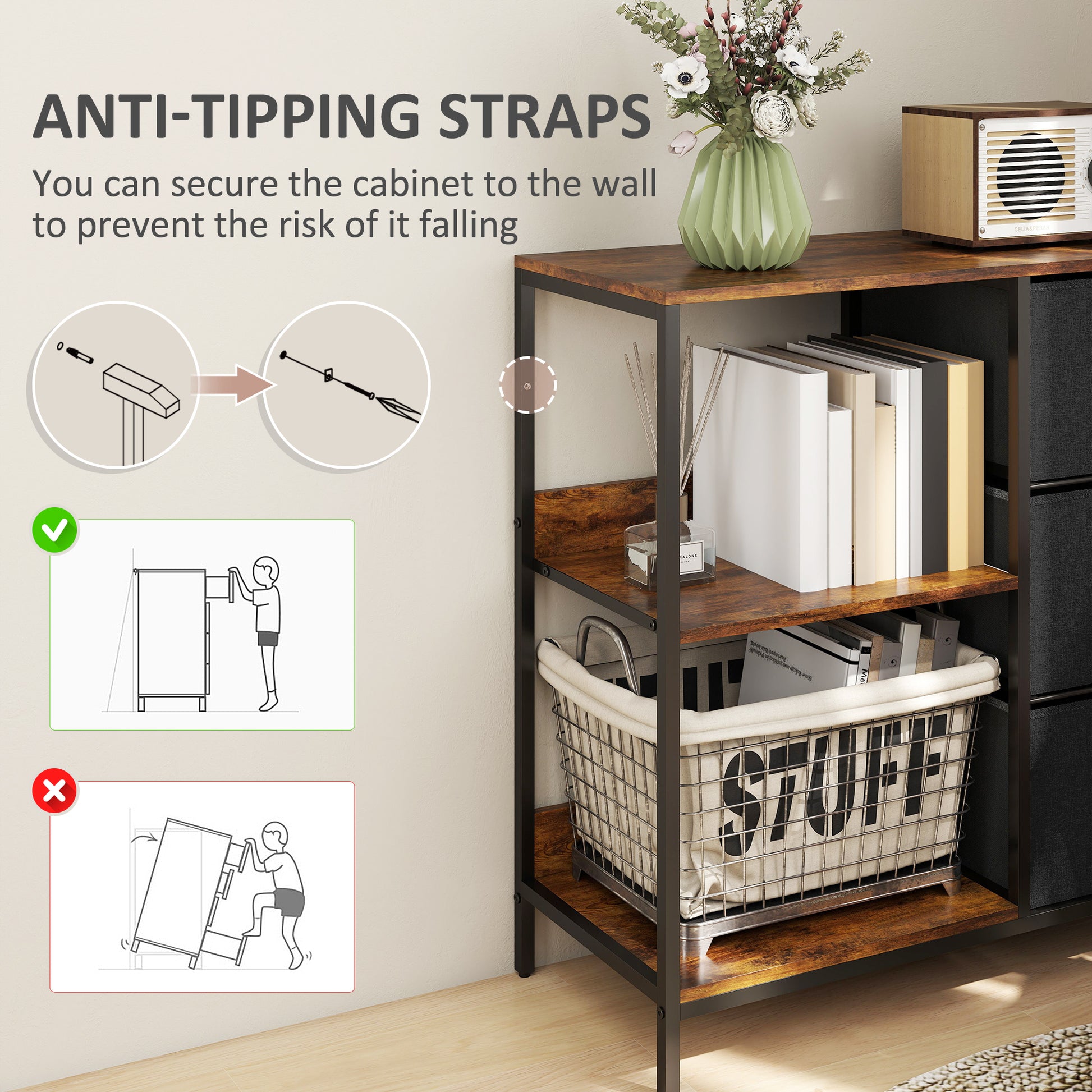 - ✔ Metallrahmen für eine robuste und formstabile Struktur. Anti-Kipp-Gurte für Sicherheit