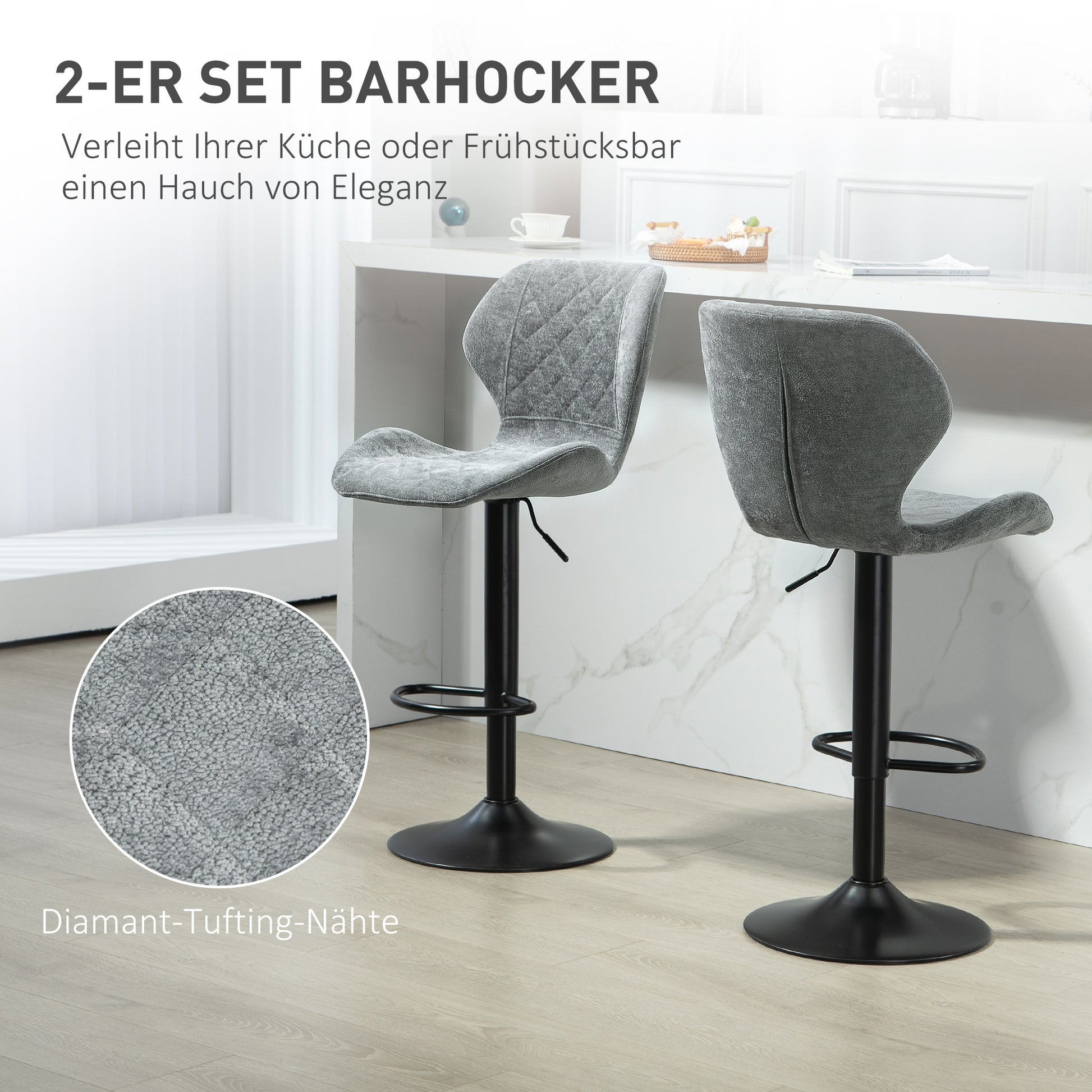 Erleben Sie ultimativen Komfort mit unseren eleganten Barhockern mit Lehne im 2er-Set, hergestellt aus weichem, luftdurchlässigem Stoff und dichtem Schaumstoff. Diese Tresenhocker sind speziell für höchsten Komfort designt, ideal für schnelle Snacks oder gesellige Abende. Verleihen Sie Ihrem Zuhause mit den verstellbaren Barhockern von HOMCOM eine Kombination aus Komfort, Stil und Funktionalität, für ein unvergleichliches Esserlebnis.